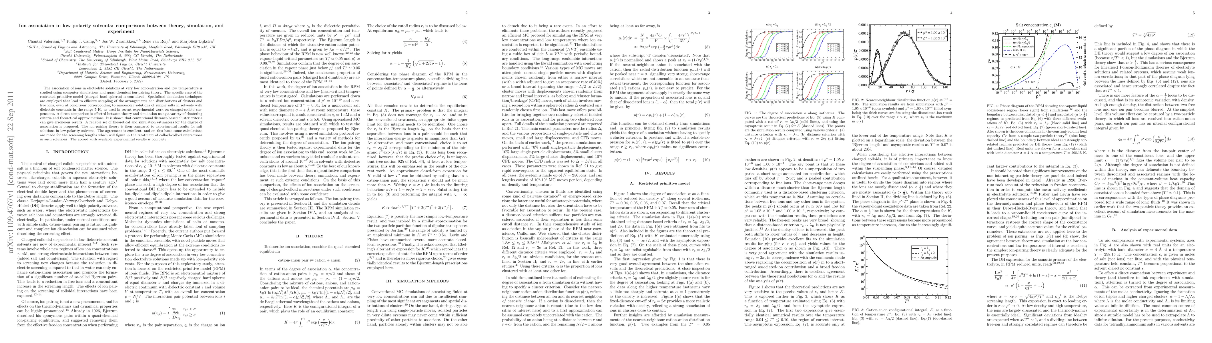 Researchers used computer simulations and theory to study ion association in low-polarity solvents, comparing their findings with experimental results and proposing a new method for estimating association degrees.