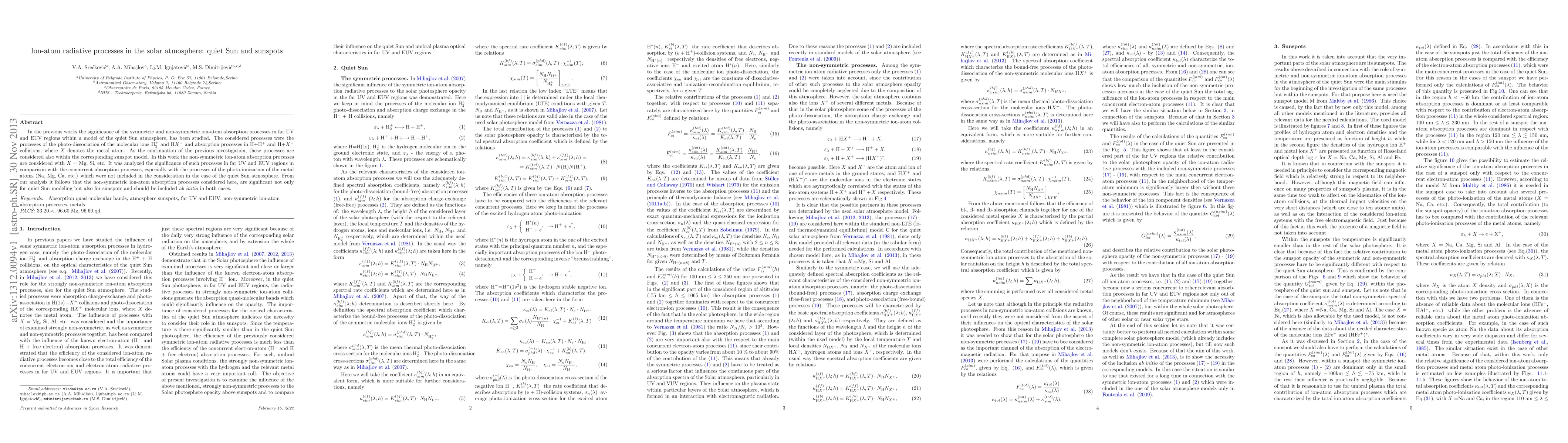 This paper investigates the significance of non-symmetric ion-atom absorption processes in the far UV and EUV regions for both quiet Sun and sunspot models, focusing on metal atoms like Mg and Si. It concludes that these processes are crucial for accurate modeling of both solar atmospheres.