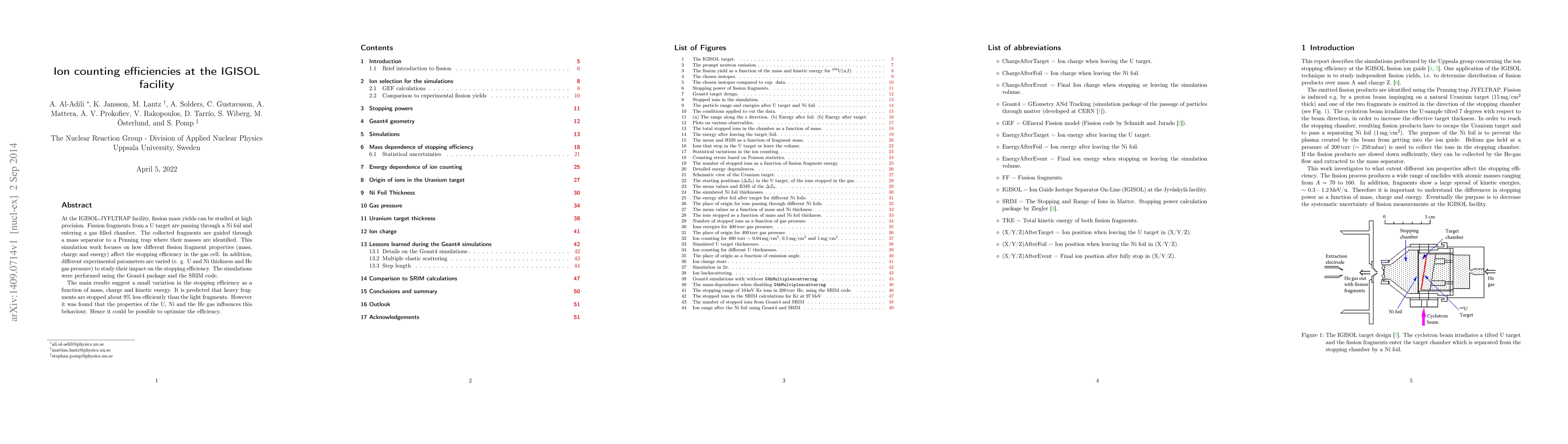 This paper investigates the ion counting efficiencies at the IGISOL-JYFLTRAP facility using simulations to determine how fission fragment properties and experimental parameters affect stopping efficiency in a gas cell. The study finds that heavy fragments are stopped about 9% less efficiently than light fragments, but optimization is possible by adjusting target, foil, and gas properties.