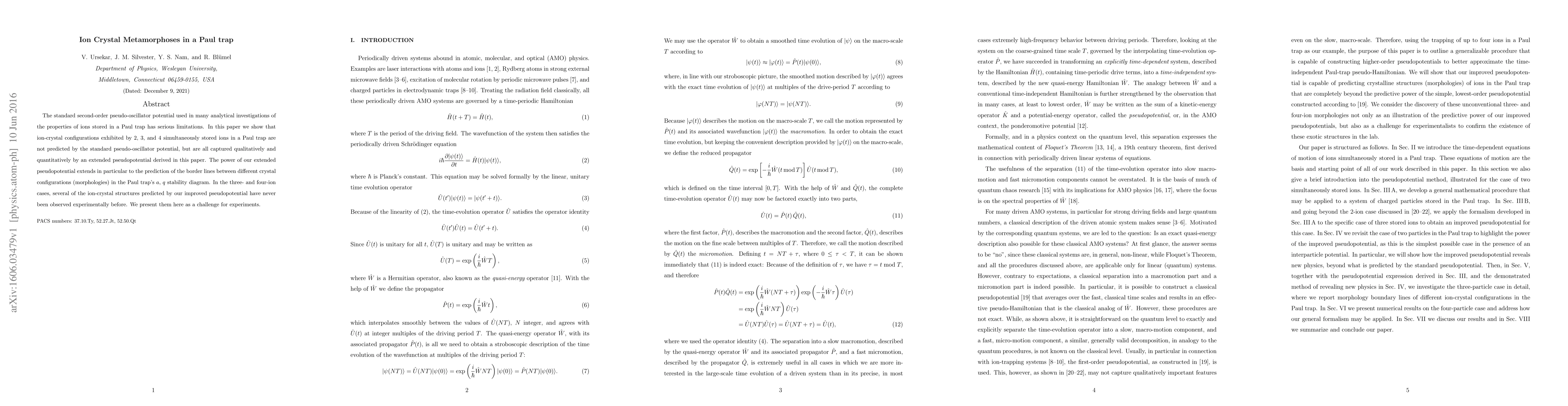 The standard second-order pseudo-oscillator potential used in many analytical investigations of the properties of ions stored in a Paul trap has serious limitations. In this paper we show that ion-crystal configurations exhibited by 2, 3, and 4 simultaneously stored ions in a Paul trap are not predicted by the standard pseudo-oscillator potential, but are all captured qualitatively and quantitatively by an extended pseudopotential derived in this paper. The power of our extended pseudopotential extends in particular to the prediction of the border lines between different crystal configurations (morphologies) in the Paul trap's $a$, $q$ stability diagram. In the three- and four-ion cases, several of the ion-crystal structures predicted by our improved pseudopotential have never been observed experimentally before. We present them here as a challenge for experiments.
