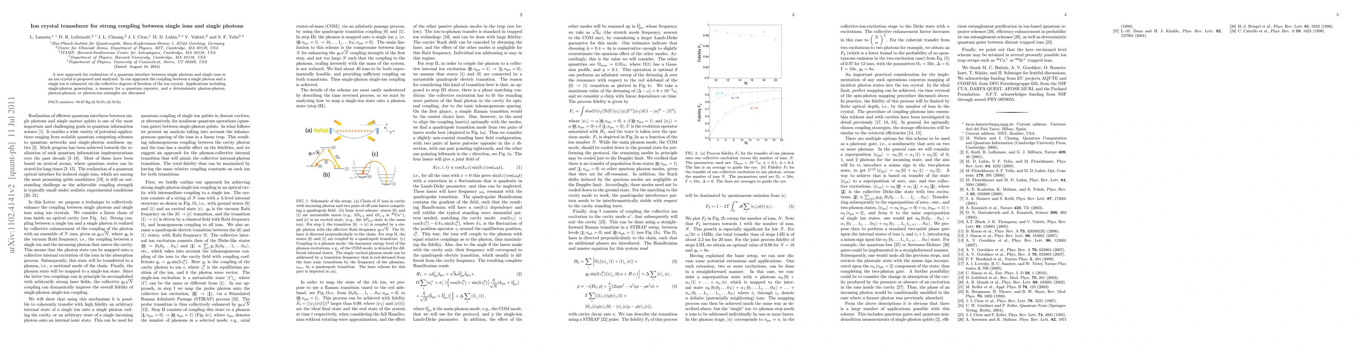 This paper proposes a novel ion crystal transducer to strongly couple single ions with single photons by leveraging the collective properties of the ion crystal. The method enhances photon-ion interactions and has potential applications in quantum communication, including single-photon generation and quantum entanglement.