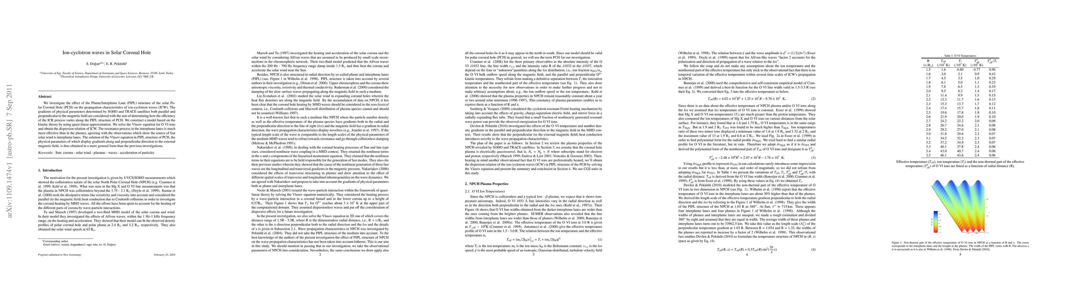We investigate the effect of the Plume/Interplume Lane (PIPL) structure of the solar Polar Coronal Hole (PCH) on the propagation characteristics of ion-cyclotron waves (ICW). The gradients of physical parameters determined by SOHO and TRACE satellites both parallel and perpendicular to the magnetic field are considered with the aim of determining how the efficiency of the ICR process varies along the PIPL structure of PCH. We construct a model based on the kinetic theory by using quasi-linear approximation. We solve the Vlasov equation for O VI ions and obtain the dispersion relation of ICW. The resonance process in the interplume lanes is much more effective than in the plumes, agreeing with the observations which show the source of fast solar wind is interplume lanes. The solution of the Vlasov equation in PIPL structure of PCH, the physical parameters of which display gradients along and perpendicular direction to the external magnetic field, is thus obtained in a more general form than the previous investigations.