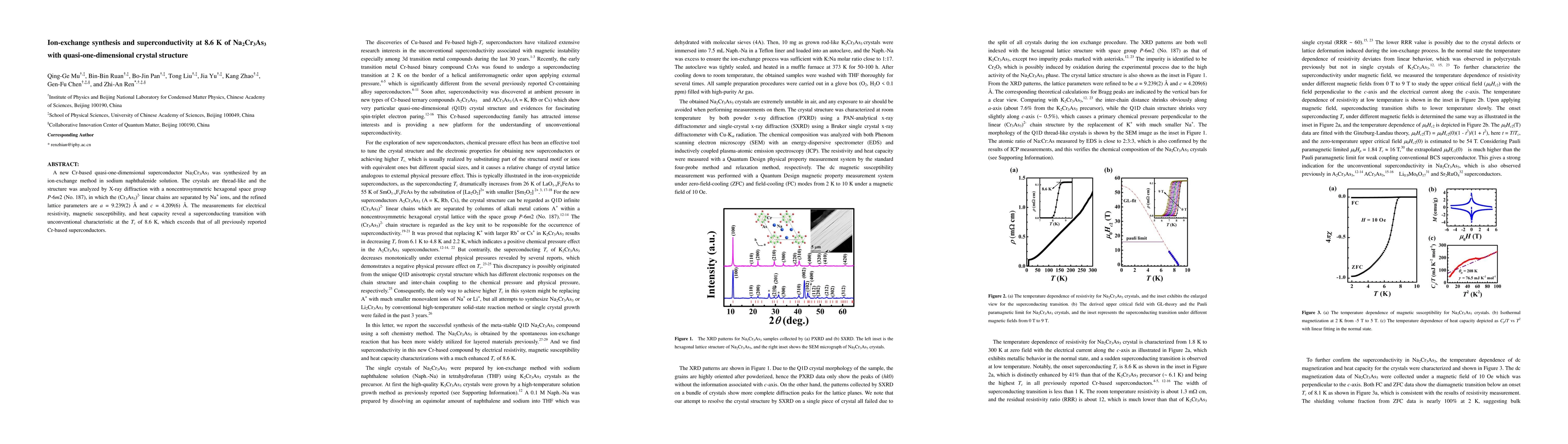 A new Cr-based quasi-one-dimensional superconductor Na2Cr3As3 was synthesized by an ion-exchange method in sodium naphthalenide solution. The crystals are thread-like and the structure was analyzed by X-ray diffraction with a noncentrosymmetric hexagonal space group P-6m2 (No. 187), in which the (Cr3As3)2- linear chains are separated by Na+ ions, and the refined lattice parameters are a = 9.239(2) {\AA} and c = 4.209(6) {\AA}. The measurements for electrical resistivity, magnetic susceptibility, and heat capacity reveal a superconducting transition with unconventional characteristic at the Tc of 8.6 K, which exceeds that of all previously reported Cr-based superconductors.