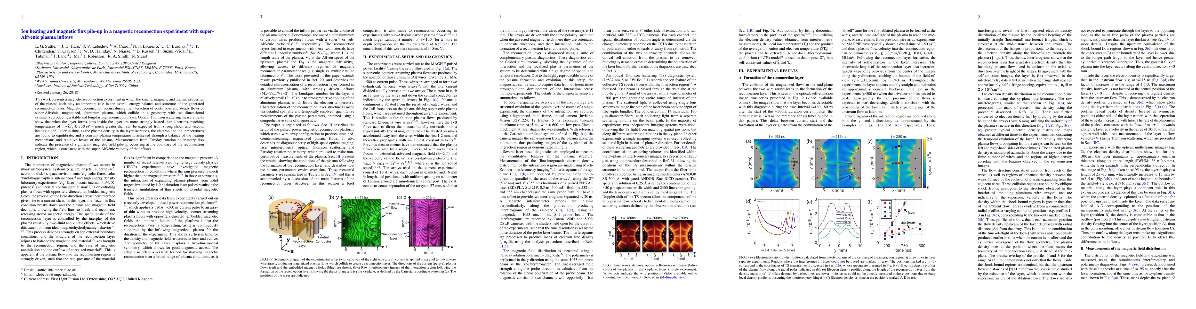 Researchers investigated magnetic reconnection with super-Alfvenic plasma inflows, finding that ions inside the reconnection layer are significantly heated to temperatures above 300 eV, leading to a balance between heating mechanisms and radiative losses.