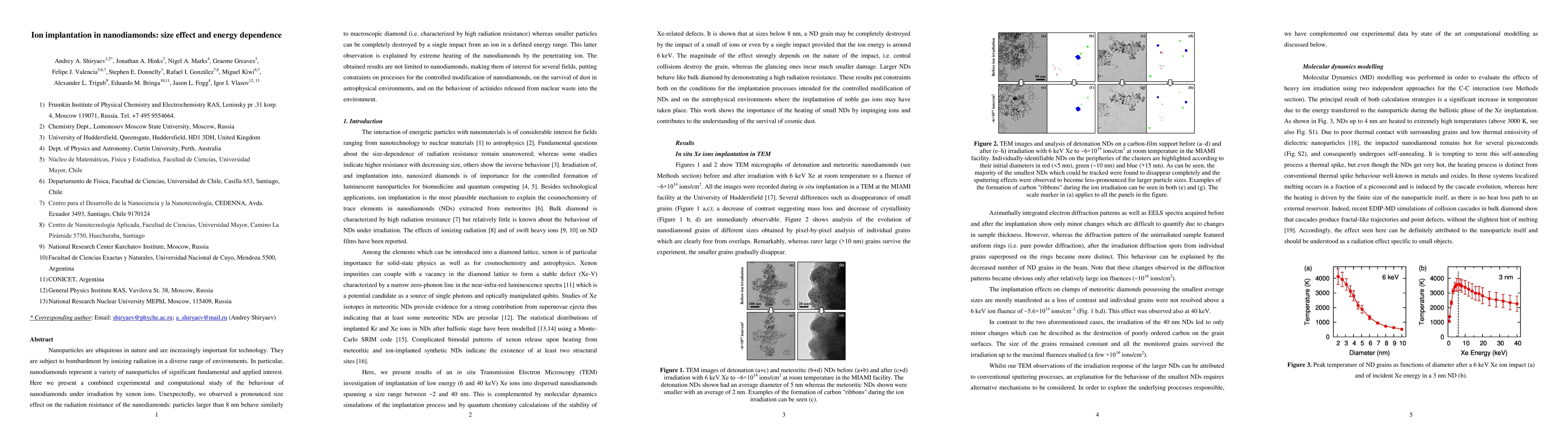 Nanoparticles are ubiquitous in nature and are increasingly important for technology. They are subject to bombardment by ionizing radiation in a diverse range of environments. In particular, nanodiamonds represent a variety of nanoparticles of significant fundamental and applied interest. Here we present a combined experimental and computational study of the behaviour of nanodiamonds under irradiation by xenon ions. Unexpectedly, we observed a pronounced size effect on the radiation resistance of the nanodiamonds: particles larger than 8 nm behave similarly to macroscopic diamond (i.e. characterized by high radiation resistance) whereas smaller particles can be completely destroyed by a single impact from an ion in a defined energy range. This latter observation is explained by extreme heating of the nanodiamonds by the penetrating ion. The obtained results are not limited to nanodiamonds, making them of interest for several fields, putting constraints on processes for the controlled modification of nanodiamonds, on the survival of dust in astrophysical environments, and on the behaviour of actinides released from nuclear waste into the environment.