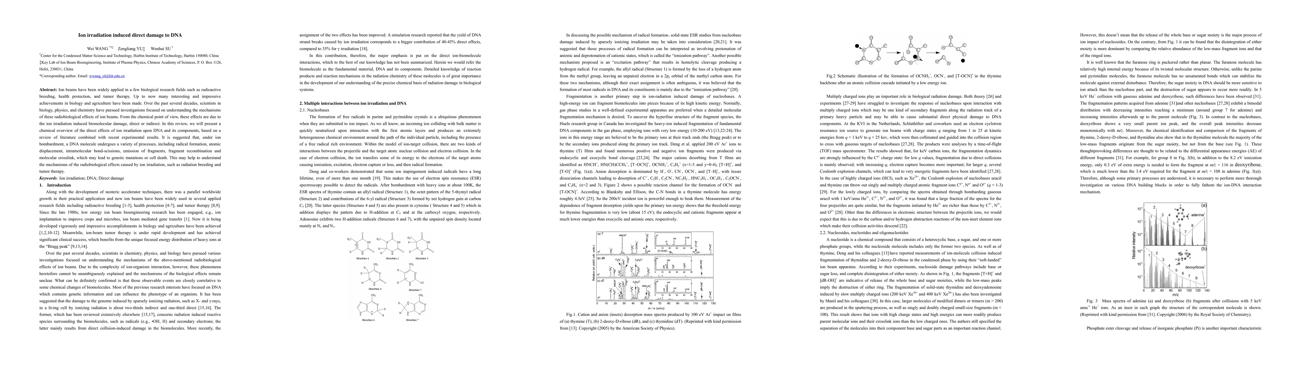 This paper reviews the direct chemical effects of ion irradiation on DNA, highlighting processes like radical formation and molecular crosslinking that can lead to genetic mutations or cell death, aiding in understanding radiobiological effects in applications like radiation breeding and tumor therapy.