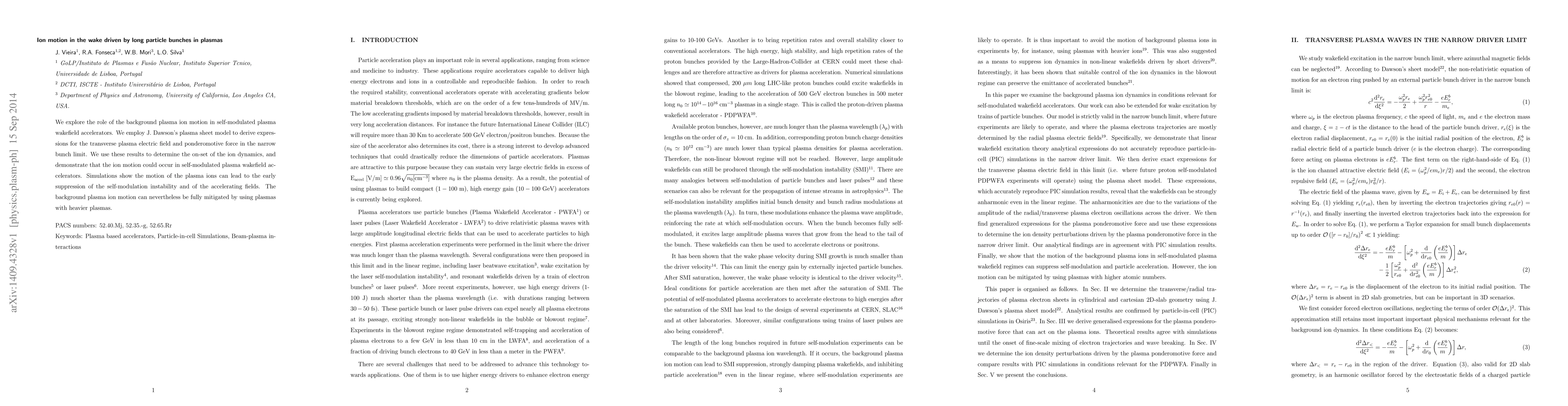 This paper investigates the impact of background plasma ion motion in self-modulated plasma wakefield accelerators, using J. Dawson's plasma sheet model to derive relevant electric field and force expressions. It finds that ion motion can suppress self-modulation and accelerating fields, but this effect can be mitigated by employing heavier plasmas.