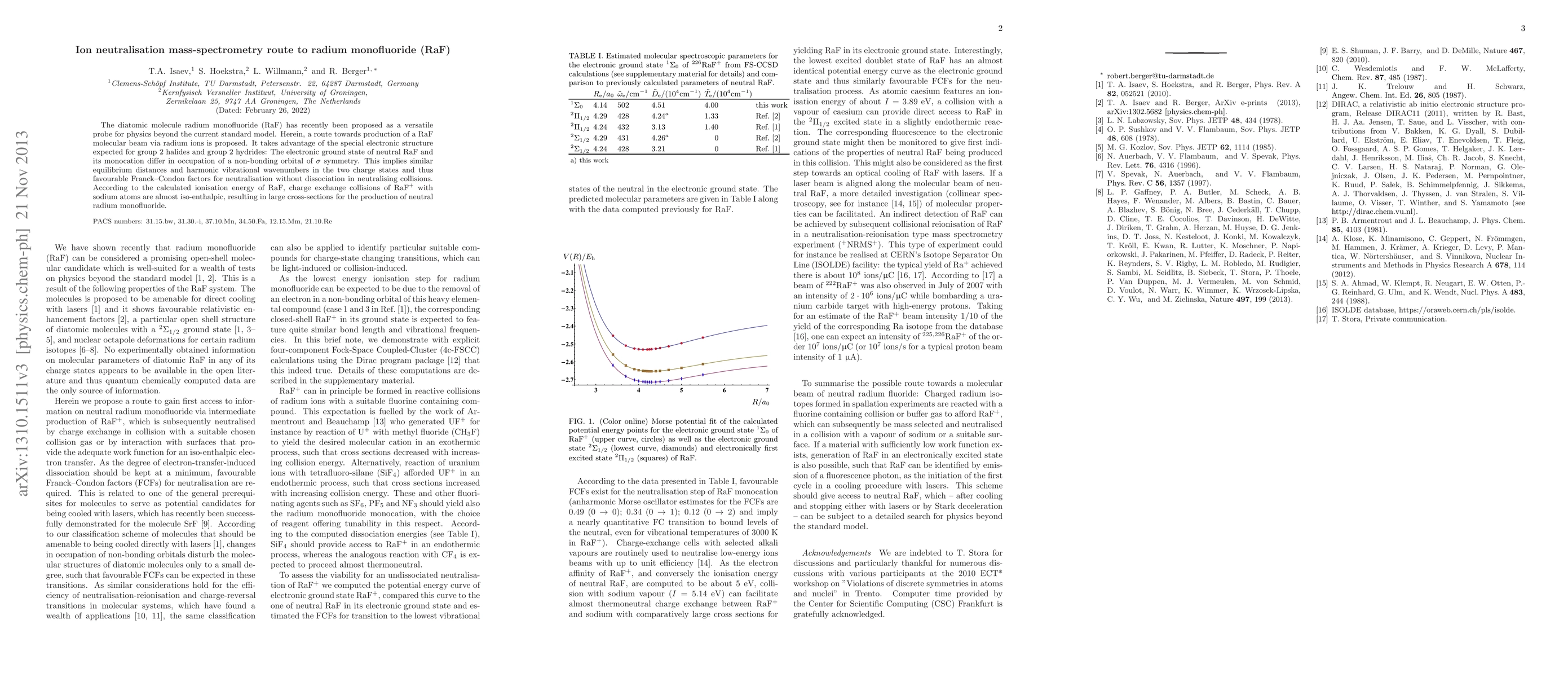 The diatomic molecule radium monofluoride (RaF) has recently been proposed as a versatile probe for physics beyond the current standard model. Herein, a route towards production of a RaF molecular beam via radium ions is proposed. It takes advantage of the special electronic structure expected for group 2 halides and group 2 hydrides: The electronic ground state of neutral RaF and its monocation differ in occupation of a non-bonding orbital of $\sigma$ symmetry. This implies similar equilibrium distances and harmonic vibrational wavenumbers in the two charge states and thus favourable Franck--Condon factors for neutralisation without dissociation in neutralising collisions. According to the calculated ionisation energy of RaF, charge exchange collisions of RaF$^+$ with sodium atoms are almost iso-enthalpic, resulting in large cross-sections for the production of neutral radium monofluoride.