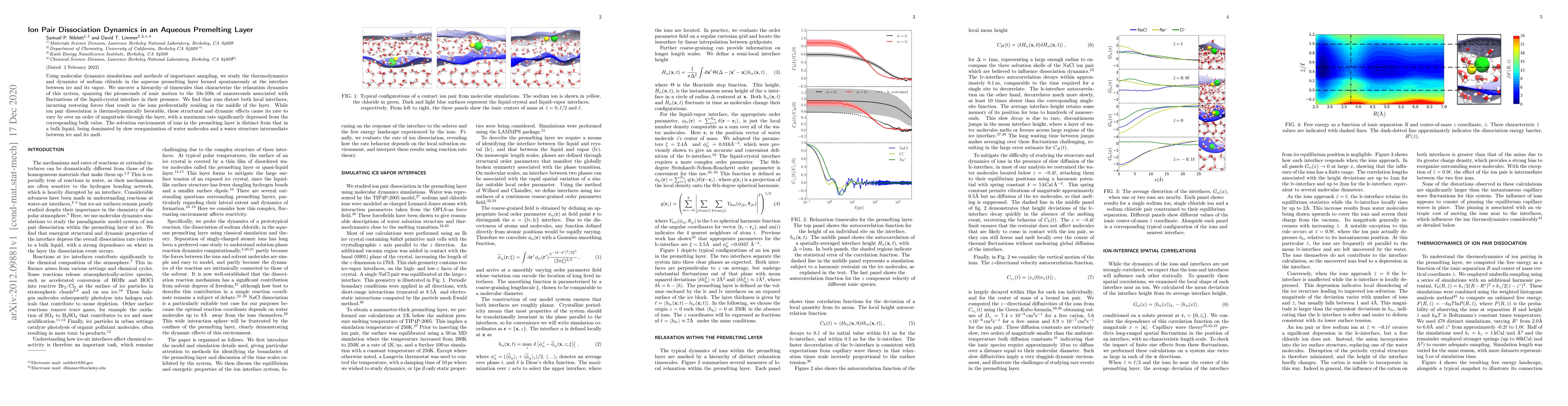 Researchers studied ion pair dissociation dynamics in an aqueous premelting layer at ice-vapor interfaces, finding ions preferentially reside in the middle of the layer due to restoring forces.