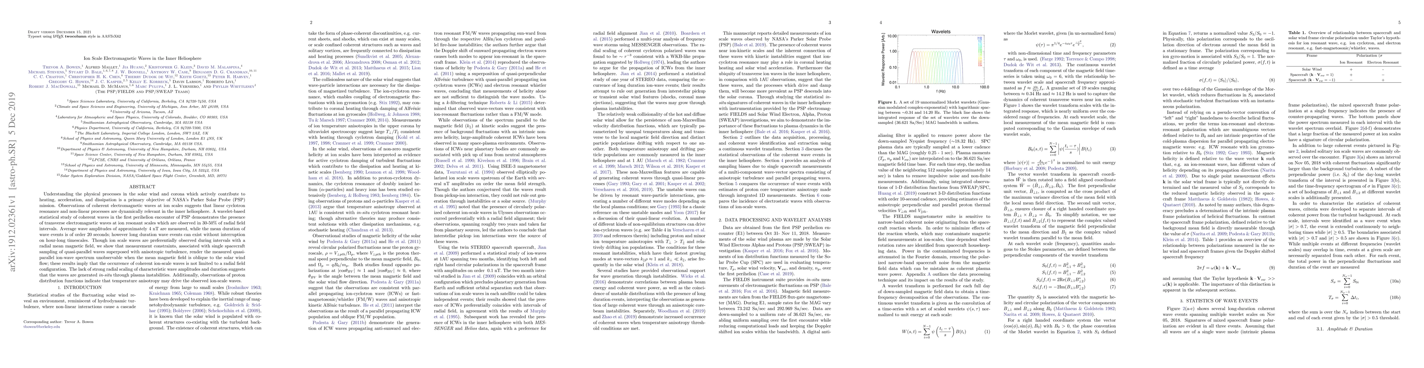 This paper investigates ion scale electromagnetic waves in the inner heliosphere using data from NASA's Parker Solar Probe, revealing that these waves are prevalent in 30-50% of radial field intervals and are likely generated in-situ by plasma instabilities driven by temperature anisotropy. The study highlights the complexity of wave observations due to the limitations of single spacecraft sampling in anisotropic turbulence.