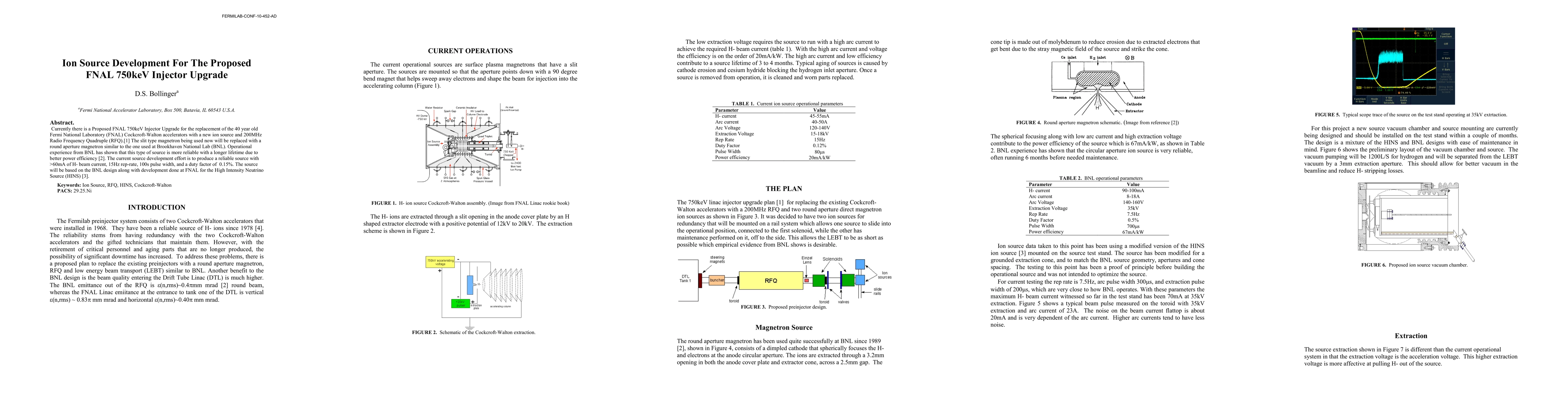 Currently there is a Proposed FNAL 750keV Injector Upgrade for the replacement of the 40 year old Fermi National Laboratory (FNAL) Cockcroft-Walton accelerators with a new ion source and 200MHz Radio Frequency Quadruple (RFQ). The slit type magnetron being used now will be replaced with a round aperture magnetron similar to the one used at Brookhaven National Lab (BNL). Operational experience from BNL has shown that this type of source is more reliable with a longer lifetime due to better power efficiency. The current source development effort is to produce a reliable source with >60mA of H- beam current, 15Hz rep-rate, 100s pulse width, and a duty factor of 0.15%. The source will be based on the BNL design along with development done at FNAL for the High Intensity Neutrino Source (HINS).