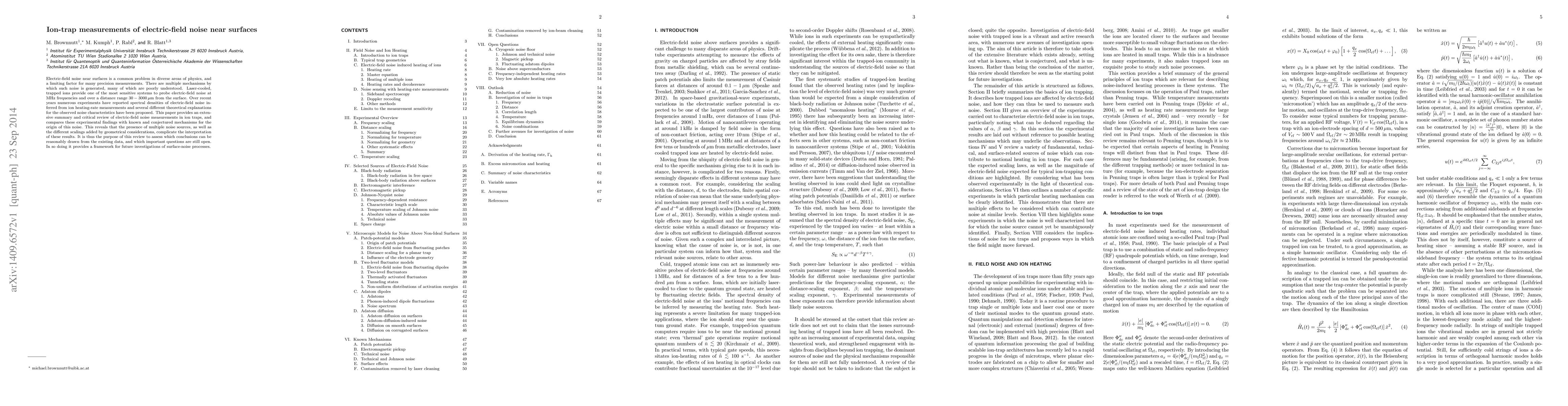 This paper reviews ion-trap measurements of electric-field noise near surfaces, comparing experimental findings with theoretical explanations to identify multiple noise sources and unresolved questions, aiming to guide future research on surface-noise processes.