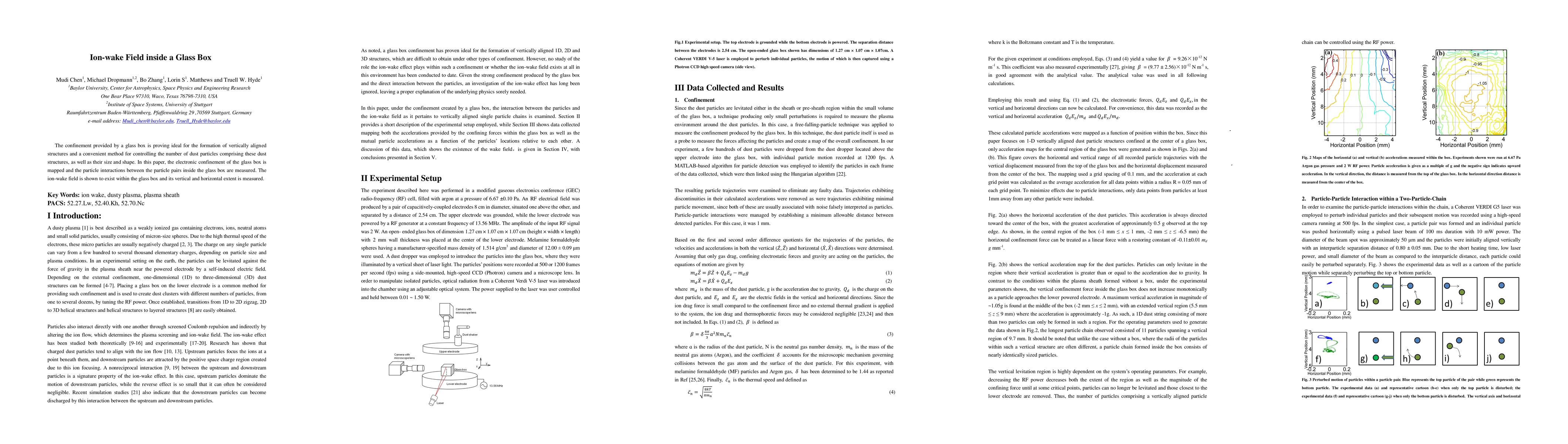 Researchers found an ion-wake field within a glass box, measuring its vertical and horizontal extent, which helps control dust particle size and shape. This confinement method produces ideal conditions for forming vertically aligned structures with precise control over particles.