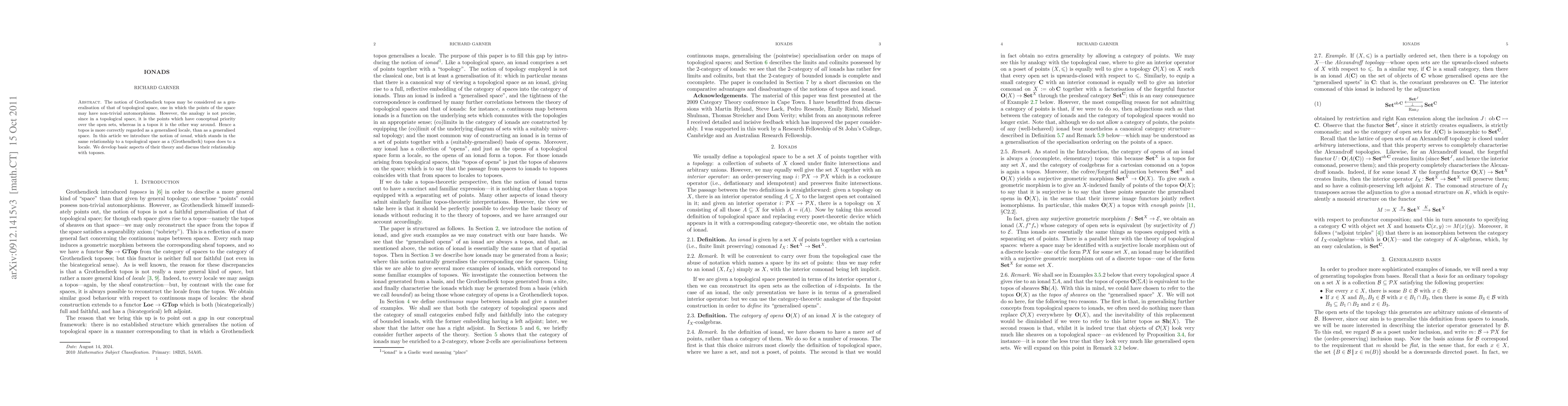 The notion of Grothendieck topos may be considered as a generalisation of that of topological space, one in which the points of the space may have non-trivial automorphisms. However, the analogy is not precise, since in a topological space, it is the points which have conceptual priority over the open sets, whereas in a topos it is the other way around. Hence a topos is more correctly regarded as a generalised locale, than as a generalised space. In this article we introduce the notion of ionad, which stands in the same relationship to a topological space as a (Grothendieck) topos does to a locale. We develop basic aspects of their theory and discuss their relationship with toposes.