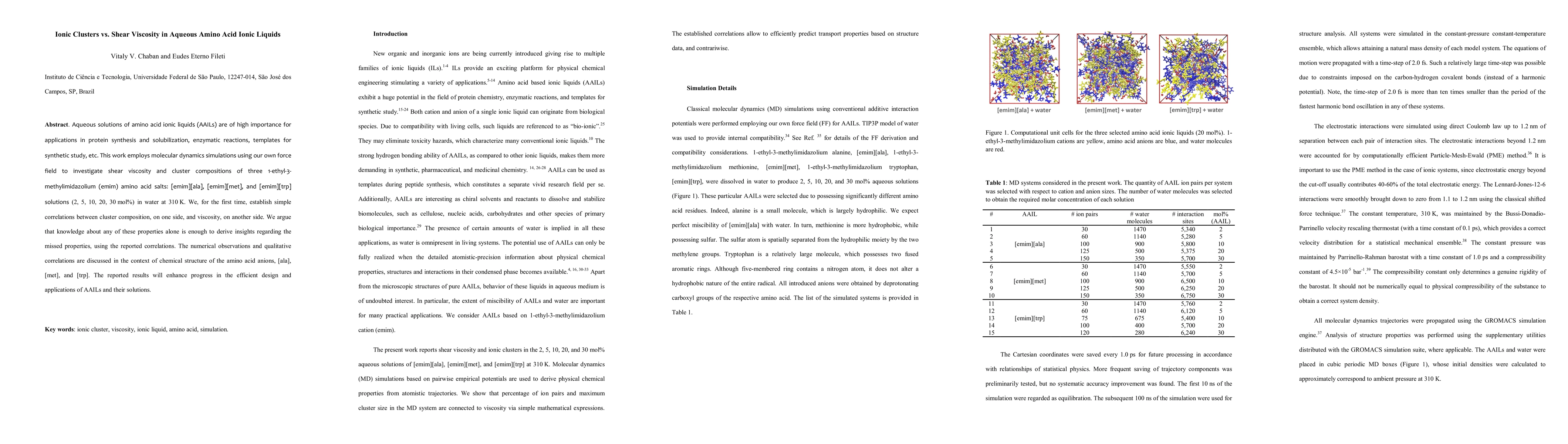 This study uses molecular dynamics simulations to investigate the shear viscosity and ionic cluster compositions in aqueous amino acid ionic liquids (AAILs), establishing correlations between cluster composition and viscosity. These insights enhance the understanding and application of AAILs in various biochemical processes.