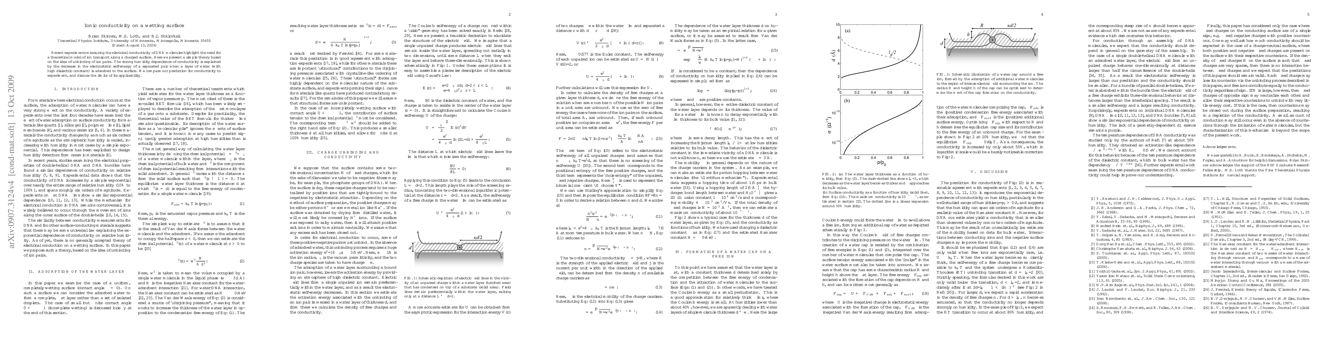 Recent experiments measuring the electrical conductivity of DNA molecules highlight the need for a theoretical model of ion transport along a charged surface. Here we present a simple theory based on the idea of unbinding of ion pairs. The strong humidity dependence of conductivity is explained by the decrease in the electrostatic self-energy of a separated pair when a layer of water (with high dielectric constant) is adsorbed to the surface. We compare our prediction for conductivity to experiment, and discuss the limits of its applicability.