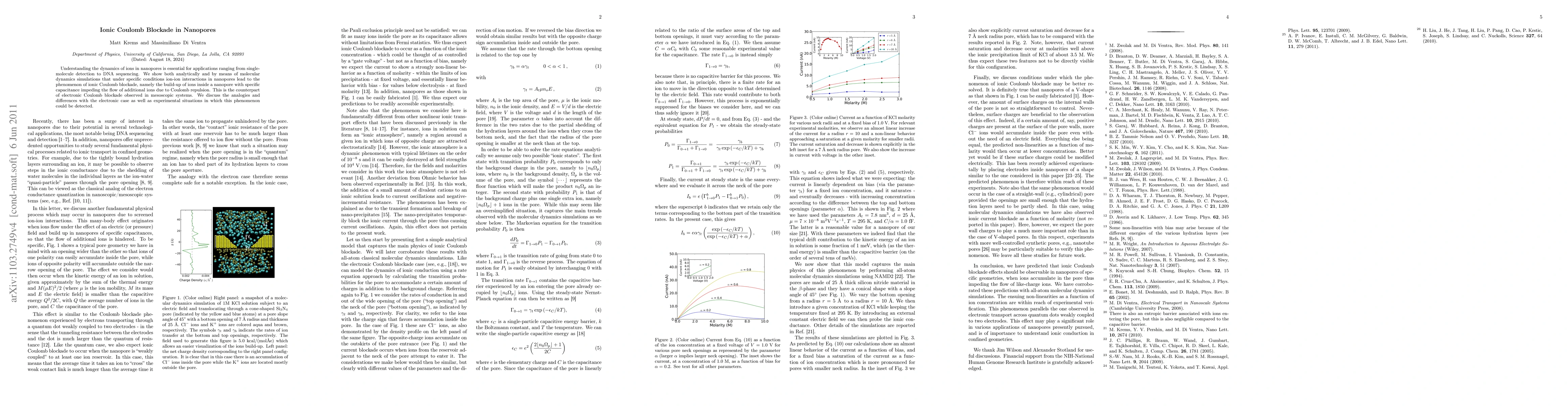 This paper investigates the ionic Coulomb blockade in nanopores, demonstrating through analytical and simulation methods that ion-ion interactions can impede additional ion flow due to Coulomb repulsion, analogous to electronic Coulomb blockade in mesoscopic systems. It highlights the phenomenon's potential for applications in single-molecule detection and DNA sequencing.