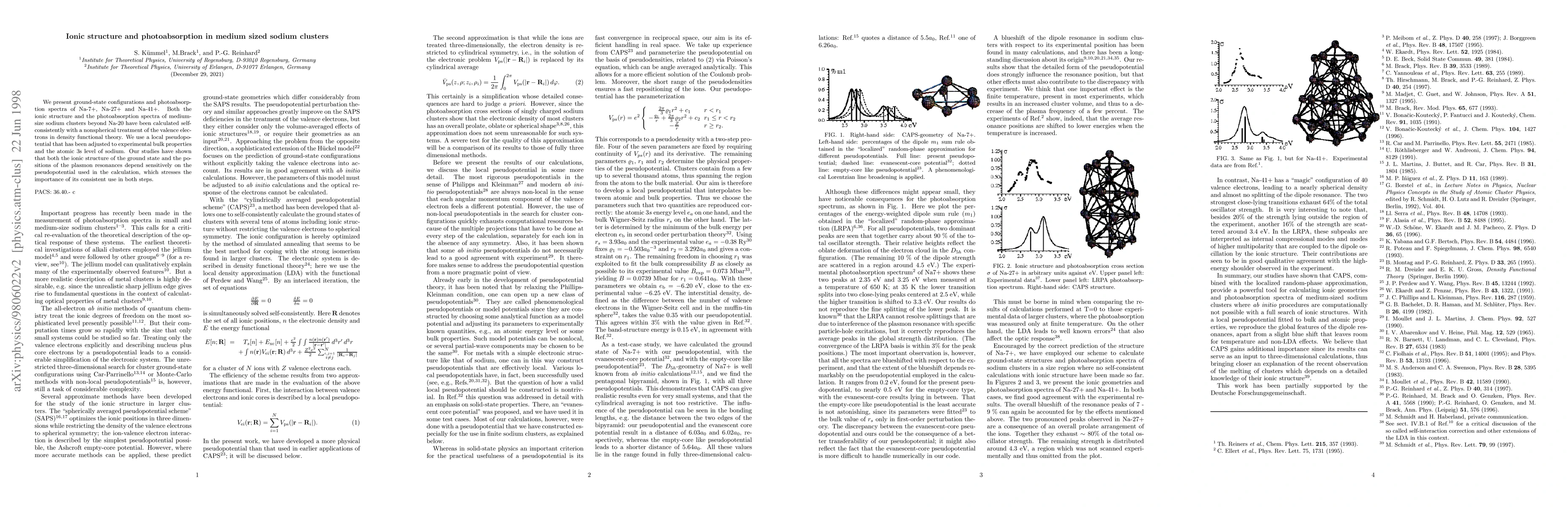 Researchers calculated ionic structure and photoabsorption spectra of medium-sized sodium clusters using density functional theory, finding that the pseudopotential used significantly affects results, highlighting its importance in cluster calculations.