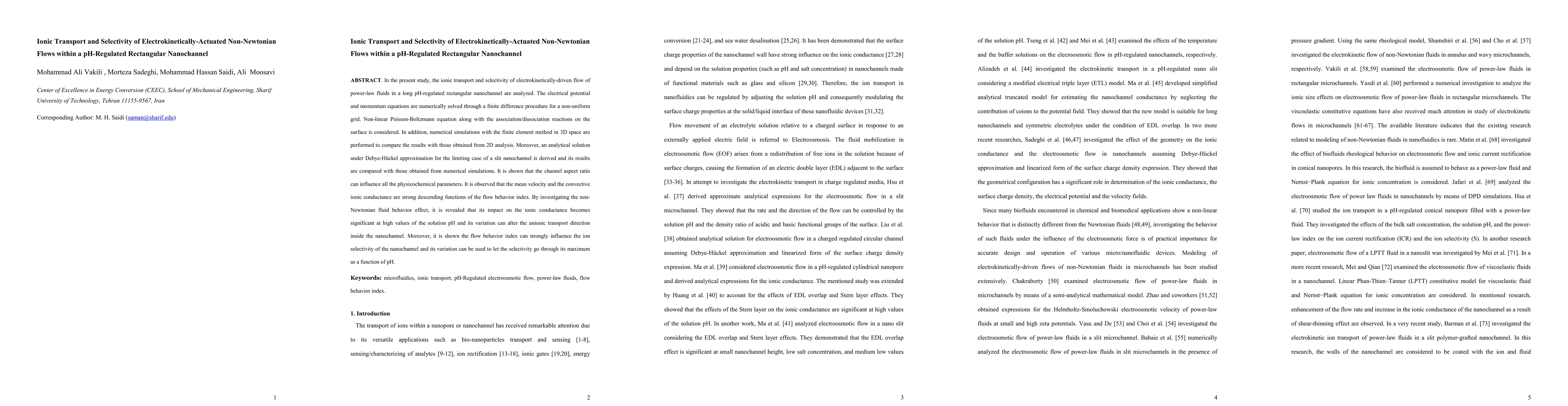 This study numerically analyzes the ionic transport and selectivity in electrokinetically-driven non-Newtonian flows within a pH-regulated rectangular nanochannel, revealing that the channel aspect ratio and flow behavior index significantly influence mean velocity, ionic conductance, and ion selectivity, especially at high pH values. Analytical and numerical simulations show that the non-Newtonian fluid behavior can reverse anionic transport direction and optimize selectivity.