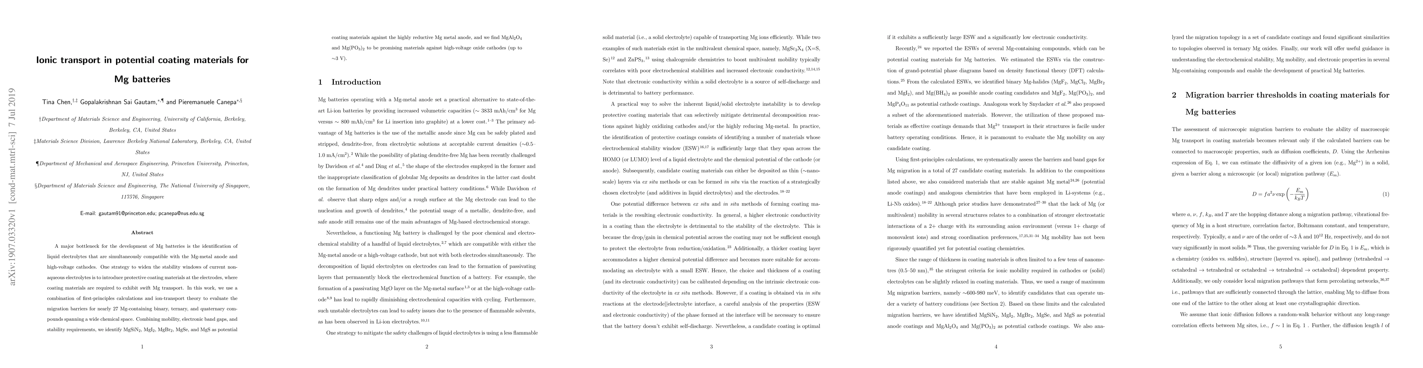 A major bottleneck for the development of Mg batteries is the identification of liquid electrolytes that are simultaneously compatible with the Mg-metal anode and high-voltage cathodes. One strategy to widen the stability windows of current non-aqueous electrolytes is to introduce protective coating materials at the electrodes, where coating materials are required to exhibit swift Mg transport. In this work, we use a combination of first-principles calculations and ion-transport theory to evaluate the migration barriers for nearly 27 Mg-containing binary, ternary, and quaternary compounds spanning a wide chemical space. Combining mobility, electronic band gaps, and stability requirements, we identify MgSiN$_2$, MgI$_2$, MgBr$_2$, MgSe, and MgS as potential coating materials against the highly reductive Mg metal anode, and we find MgAl$_2$O$_4$ and Mg(PO$_3$)$_2$ to be promising materials against high-voltage oxide cathodes (up to $\sim$3~V).