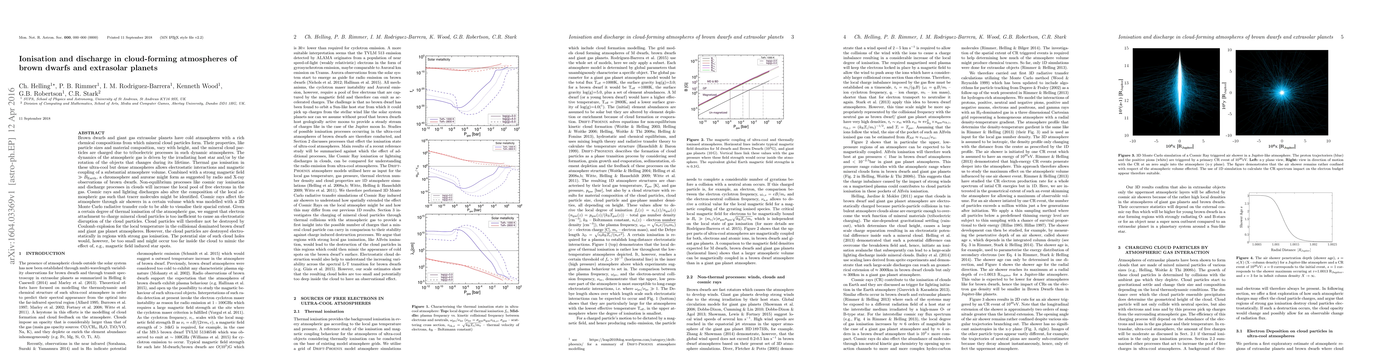 This paper investigates the ionization and discharge dynamics in the atmospheres of brown dwarfs and extrasolar planets, focusing on the formation and behavior of charged mineral cloud particles. It concludes that while ionization and discharge processes can lead to the electrostatic destruction of cloud particles in highly ionized regions, they are unlikely to cause significant disruption in typical brown dwarf and giant gas planet atmospheres due to inefficient electron attachment.