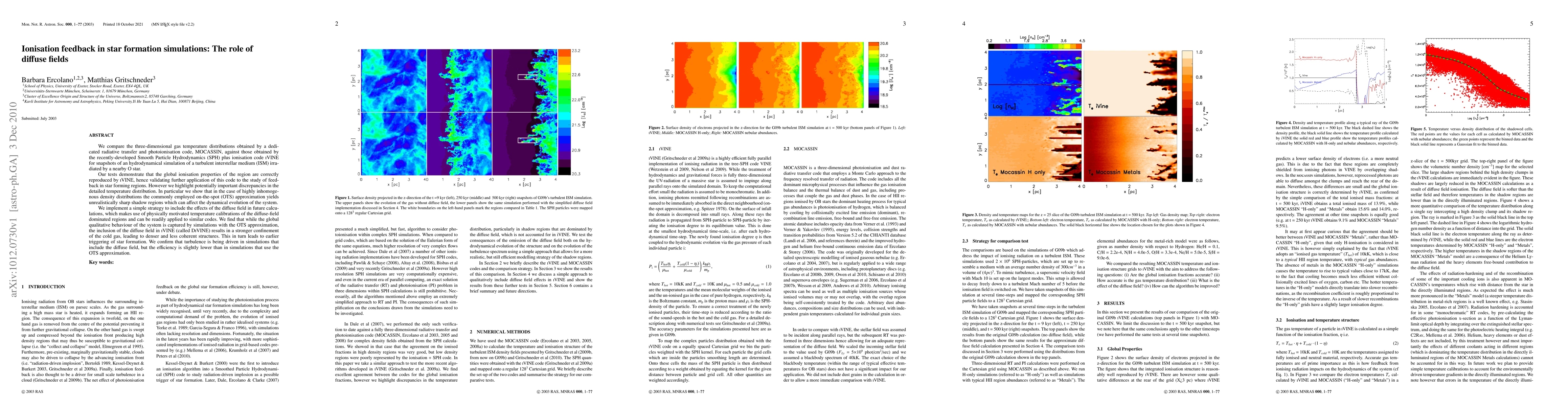 We compare the three-dimensional gas temperature distributions obtained by a dedicated radiative transfer and photoionisation code, MOCASSIN, against those obtained by the recently-developed Smooth Particle Hydrodynamics (SPH) plus ionisation code iVINE for snapshots of an hydrodynamical simulation of a turbulent interstellar medium (ISM) irradiated by a nearby O star. Our tests demonstrate that the global ionisation properties of the region are correctly reproduced by iVINE, hence validating further application of this code to the study of feedback in star forming regions. However we highlight potentially important discrepancies in the detailed temperature distribution. In particular we show that in the case of highly inhomogenous density distributions the commonly employed on-the-spot (OTS) approximation yields unrealistically sharp shadow regions which can affect the dynamical evolution of the system. We implement a simple strategy to include the effects of the diffuse field in future calculations, which makes use of physically motivated temperature calibrations of the diffuse-field dominated regions and can be readily applied to similar codes. We find that while the global qualitative behaviour of the system is captured by simulations with the OTS approximation, the inclusion of the diffuse field in iVINE (called DiVINE) results in a stronger confinement of the cold gas, leading to denser and less coherent structures. This in turn leads to earlier triggering of star formation. We confirm that turbulence is being driven in simulations that include the diffuse field, but the efficiency is slightly lower than in simulations that use the OTS approximation.