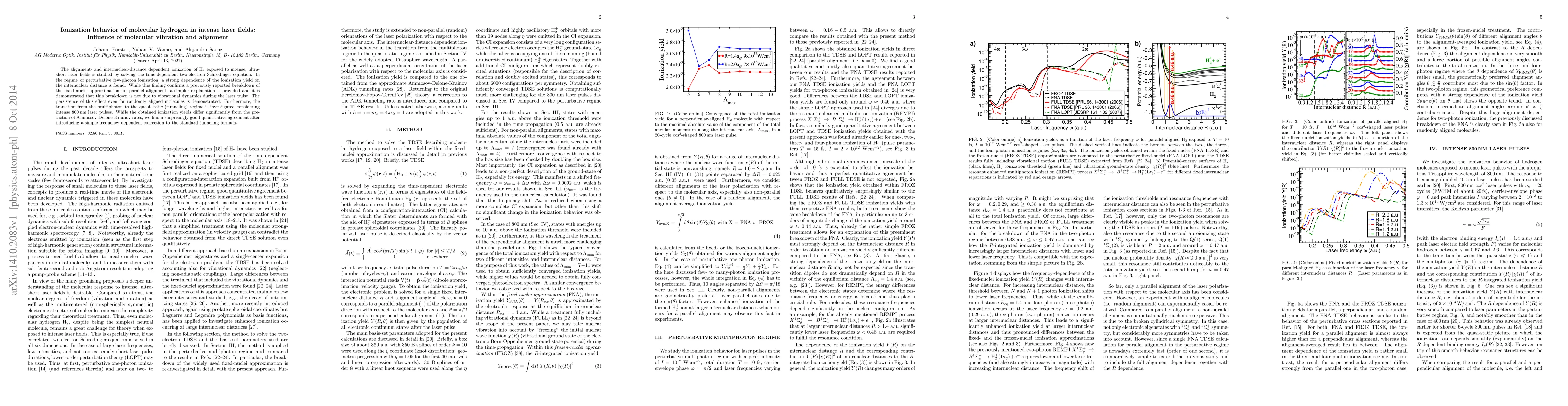 This study investigates the ionization of molecular hydrogen in intense laser fields, focusing on the influence of molecular alignment and internuclear distance. It reveals a significant dependence of ionization yield on these factors, challenging the fixed-nuclei approximation and demonstrating a transition from multiphoton to tunneling ionization regimes with a frequency-dependent correction improving predictive accuracy.