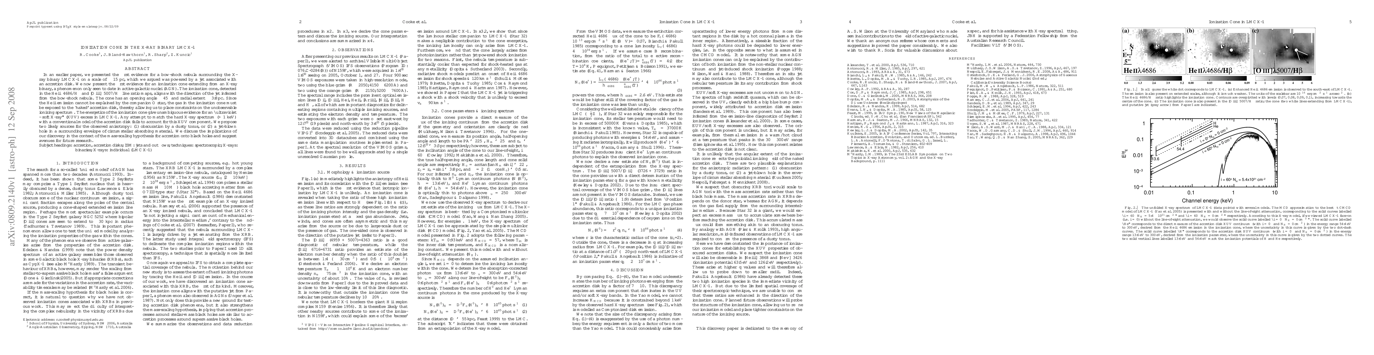 This paper presents the first evidence for an ionization cone in the X-ray binary LMC X-1, similar to those seen in active galactic nuclei, indicating a jet-driven phenomenon. The cone's alignment with the jet suggests an "ultraviolet - soft X-ray" excess, challenging conventional accretion disk models and proposing obscuration or a jet-blown hole as potential sources for the observed anisotropy.