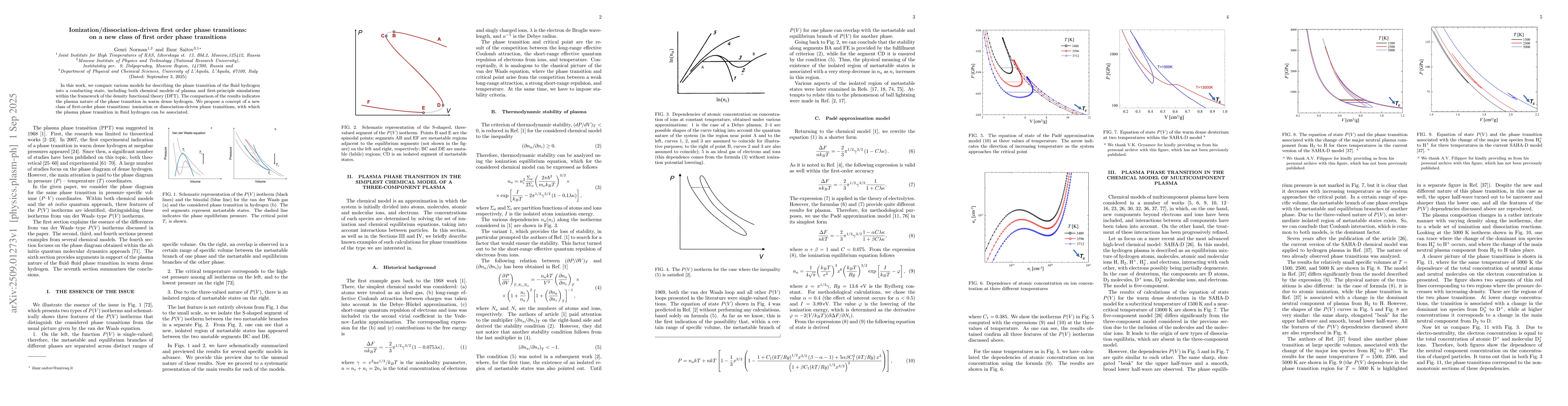 In this work, we compare various models for describing the phase transition of the fluid hydrogen into a conducting state, including both chemical models of plasma and first-principle simulations within the framework of the density functional theory (DFT). The comparison of the results indicates the plasma nature of the phase transition in warm dense hydrogen. We propose a concept of a new class of first-order phase transitions: ionization or dissociation-driven phase transitions, with which the plasma phase transition in fluid hydrogen can be associated.