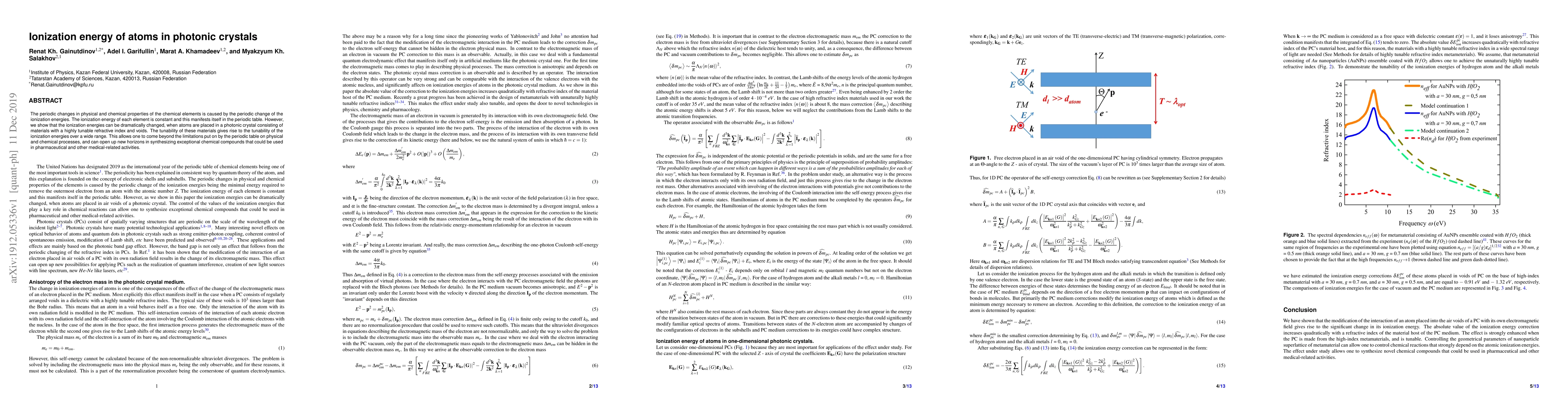 This paper demonstrates that the ionization energies of atoms can be significantly altered when placed within photonic crystals, which possess tunable refractive indices. This tunability enables the manipulation of ionization energies, potentially overcoming the limitations of the periodic table and enabling the development of novel chemical compounds for medical applications.