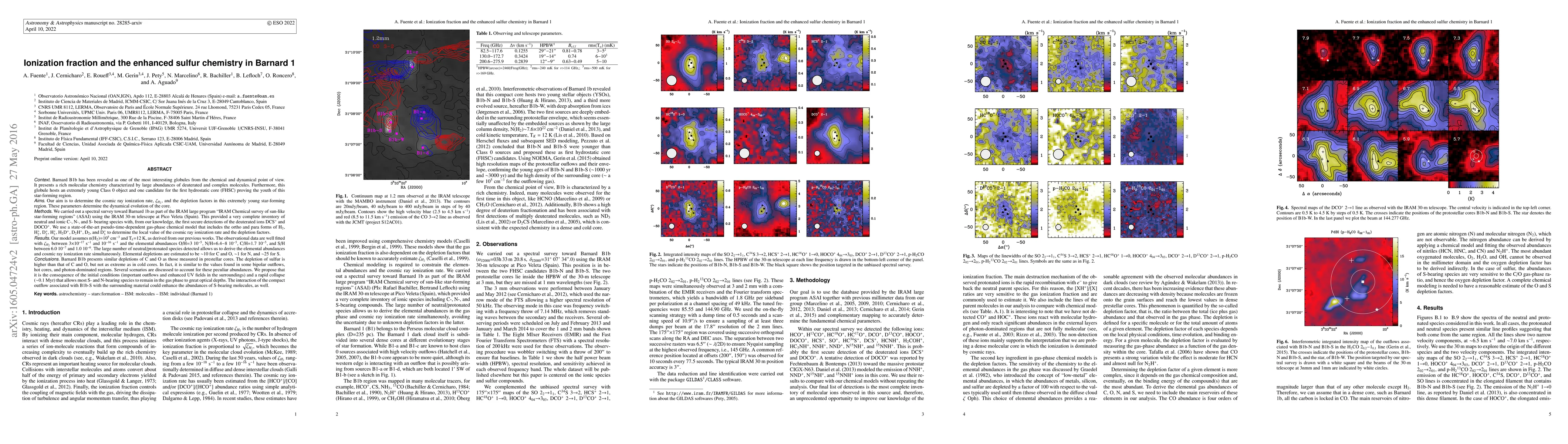 This paper investigates the ionization fraction and sulfur chemistry in Barnard 1b, revealing high cosmic ray ionization rates and significant sulfur depletion. The study suggests that initial conditions and rapid collapse contribute to maintaining sulfur and nitrogen species in gas phase, while outflows and UV fields enhance sulfur-bearing molecules.