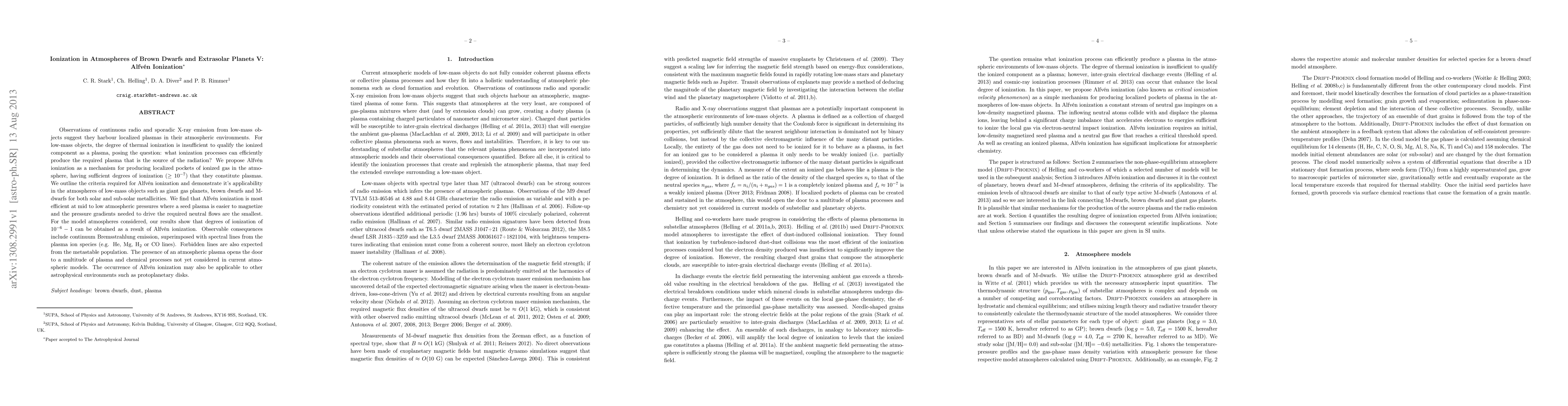This paper proposes Alfvén ionization as a mechanism to produce plasma in the atmospheres of low-mass objects like brown dwarfs and giant gas planets, explaining the observed radio and X-ray emissions. The study finds Alfvén ionization most effective at mid-to-low atmospheric pressures, potentially leading to ionization degrees of $10^{-6}-1$ and observable continuum Bremsstrahlung and spectral lines.