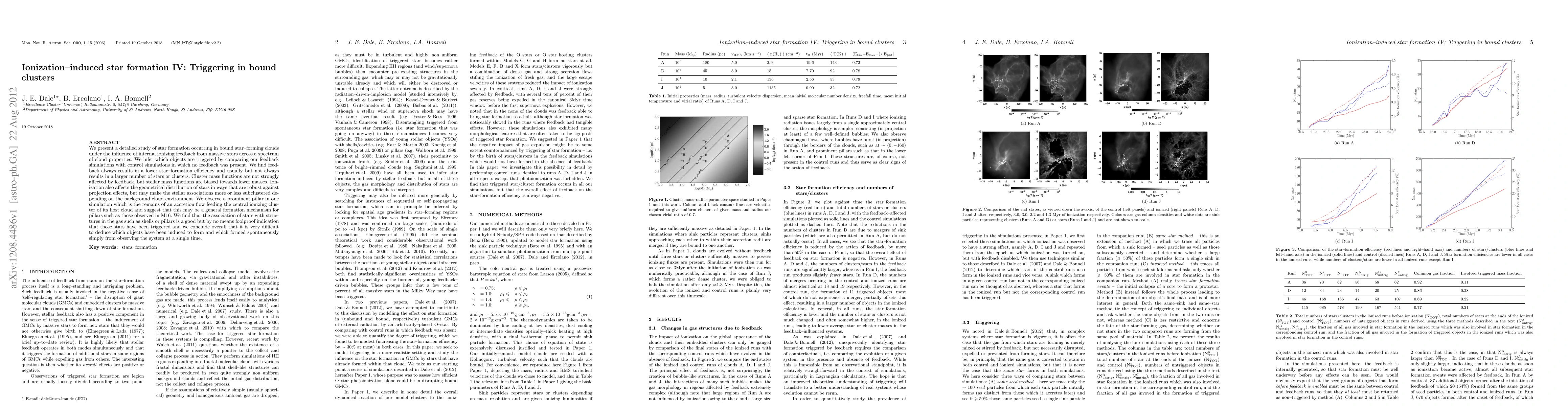 We present a detailed study of star formation occurring in bound star--forming clouds under the influence of internal ionizing feedback from massive stars across a spectrum of cloud properties. We infer which objects are triggered by comparing our feedback simulations with control simulations in which no feedback was present. We find feedback always results in a lower star--formation efficiency and usually but not always results in a larger number of stars or clusters. Cluster mass functions are not strongly affected by feedback, but stellar mass functions are biased towards lower masses. Ionization also affects the geometrical distribution of stars in ways that are robust against projection effects, but may make the stellar associations more or less subclustered depending on the background cloud environment. We observe a prominent pillar in one simulation which is the remains of an accretion flow feeding the central ionizing cluster of its host cloud and suggest that this may be a general formation mechanism for pillars such as those observed in M16. We find that the association of stars with structures in the gas such as shells or pillars is a good but by no means foolproof indication that those stars have been triggered and we conclude overall that it is very difficult to deduce which objects have been induced to form and which formed spontaneously simply from observing the system at a single time.