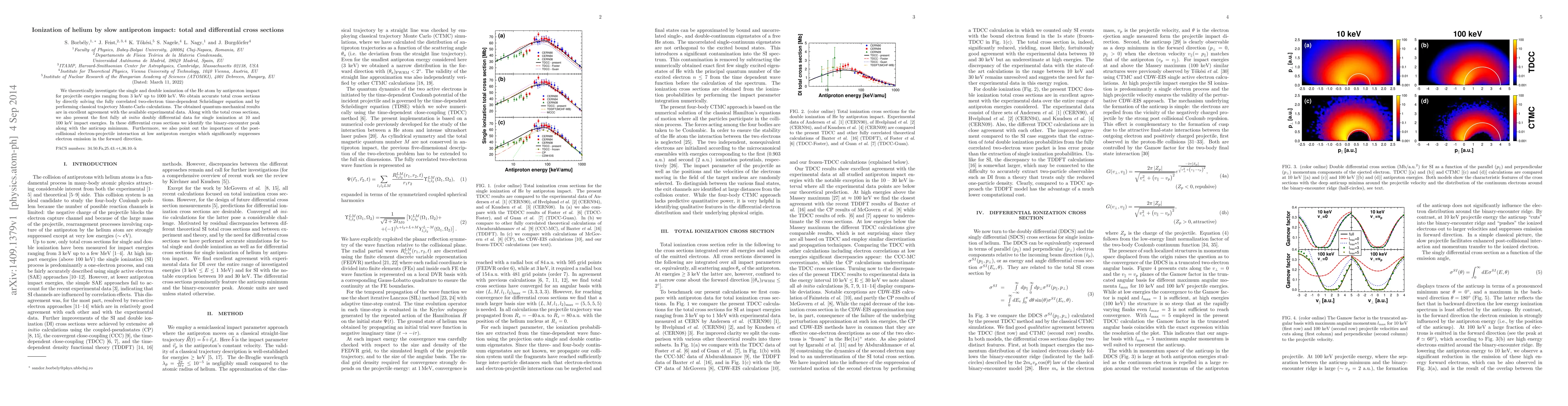 This paper investigates the ionization of helium atoms by slow antiprotons, providing accurate total and differential cross sections for single and double ionization. Quantum-mechanical calculations and classical trajectory methods yield results that match experimental data, revealing the binary-encounter peak and anticusp minimum in differential cross sections, and highlighting the impact of post-collisional interactions at low energies.