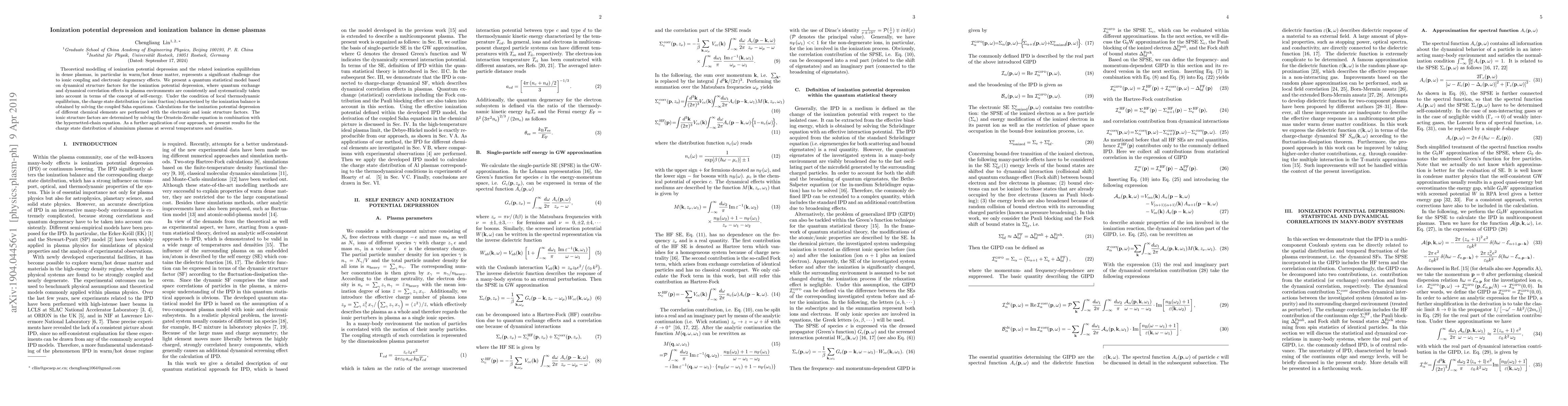 This paper presents a quantum statistical model for ionization potential depression in dense plasmas, taking into account ionic coupling and electronic degeneracy. The model uses dynamical structure factors and self-energy concepts to achieve a consistent account of quantum exchange and dynamical correlation effects, and it provides a detailed calculation of the ionization balance for various elements, including aluminum plasmas at different temperatures and densities.