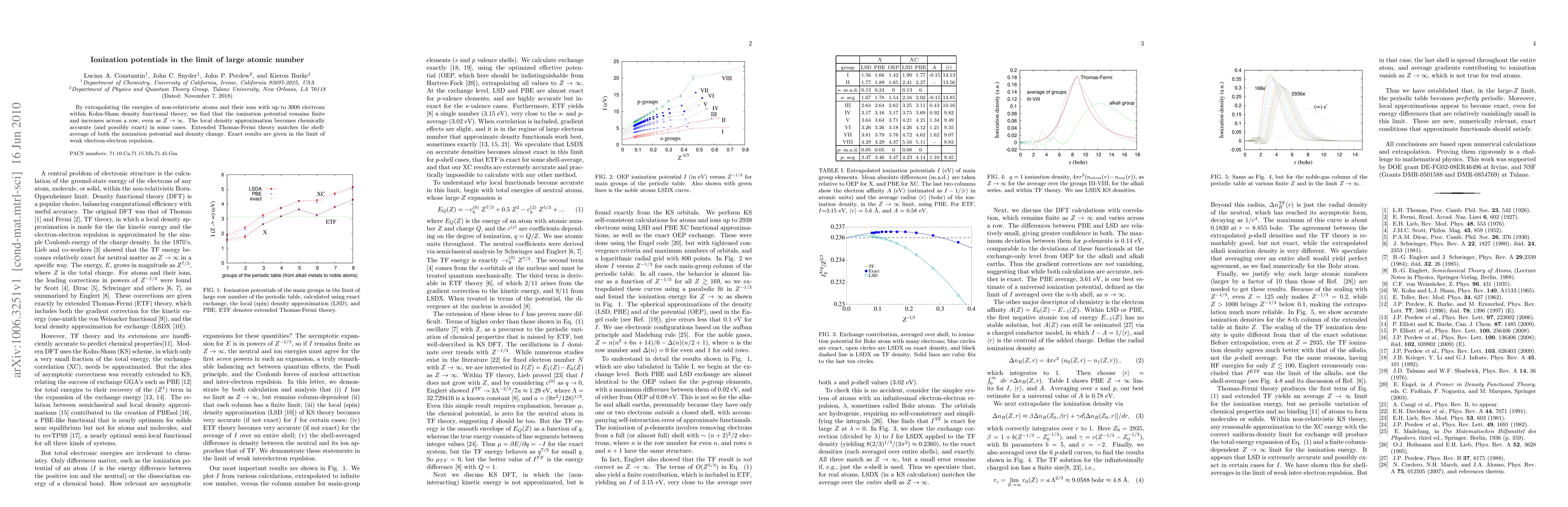 Researchers found that ionization potential remains finite and increases as atomic number approaches infinity, with some methods providing chemically accurate results.