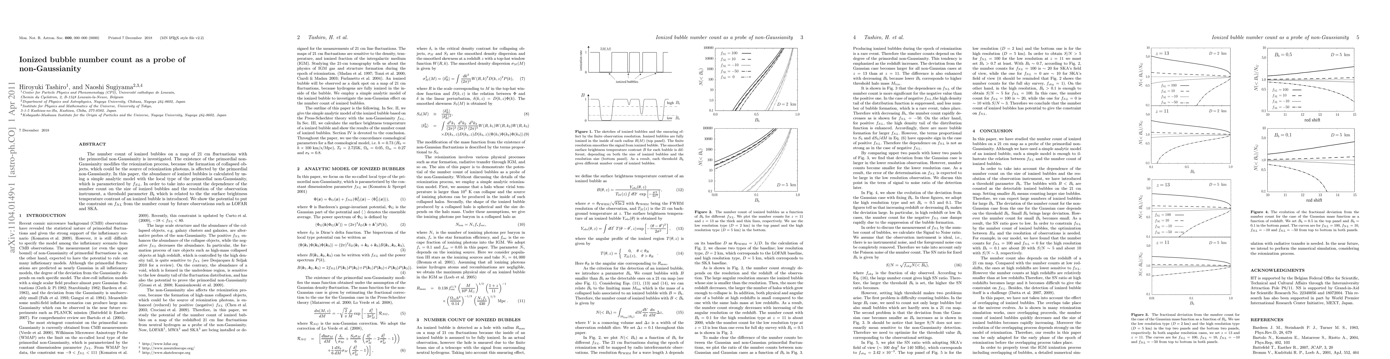 This paper investigates the number count of ionized bubbles in 21 cm fluctuation maps to probe primordial non-Gaussianity, which affects the reionization process. Using an analytic model, it calculates ionized bubble abundance and introduces a threshold parameter to account for bubble size and observational resolution, suggesting future instruments like LOFAR and SKA could constrain f_{NL}.