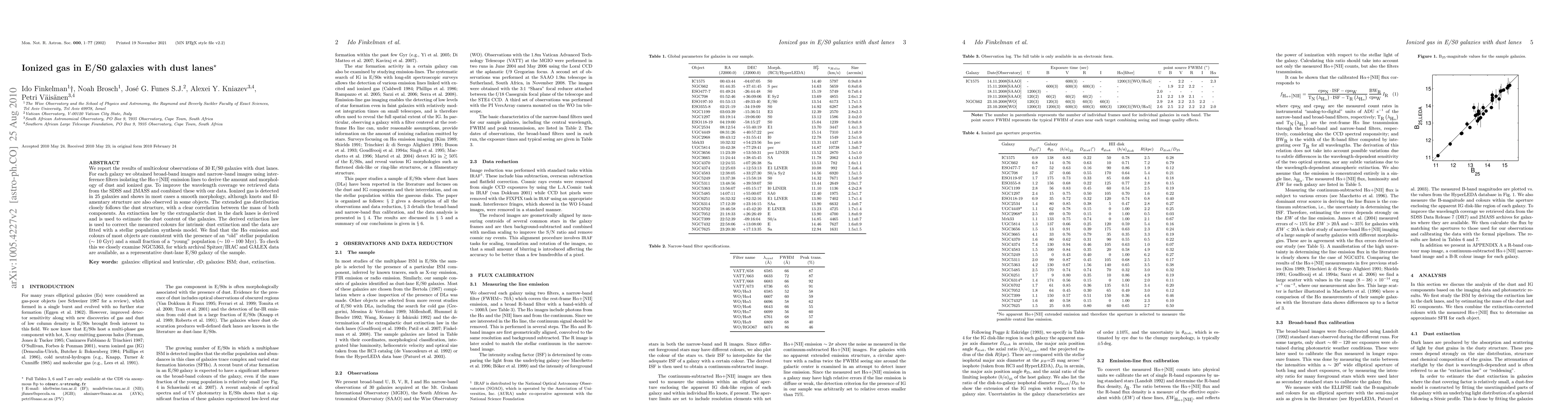 This study investigates ionized gas and dust in 30 E/S0 galaxies with dust lanes, revealing ionized gas in 25 galaxies and a correlation between gas and dust mass. The analysis suggests an old stellar population (~10 Gyr) with minor young populations (~10-100 Myr), confirmed by detailed examination of NGC5363.