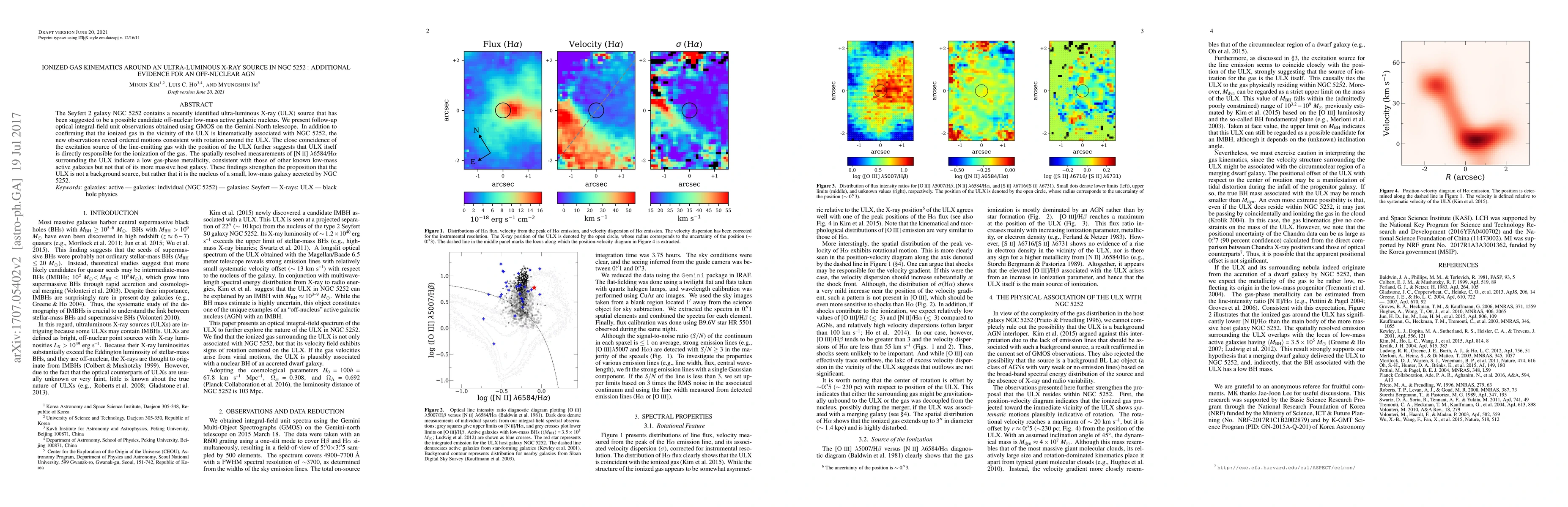 The Seyfert 2 galaxy NGC 5252 contains a recently identified ultra-luminous X-ray (ULX) source that has been suggested to be a possible candidate off-nuclear low-mass active galactic nucleus. We present follow-up optical integral-field unit observations obtained using GMOS on the Gemini-North telescope. In addition to confirming that the ionized gas in the vicinity of the ULX is kinematically associated with NGC 5252, the new observations reveal ordered motions consistent with rotation around the ULX. The close coincidence of the excitation source of the line-emitting gas with the position of the ULX further suggests that ULX itself is directly responsible for the ionization of the gas. The spatially resolved measurements of [N II] $\lambda$ 6584/H$\alpha$ surrounding the ULX indicate a low gas-phase metallicity, consistent with those of other known low-mass active galaxies but not that of its more massive host galaxy. These findings strengthen the proposition that the ULX is not a background source, but rather that it is the nucleus of a small, low-mass galaxy accreted by NGC 5252.