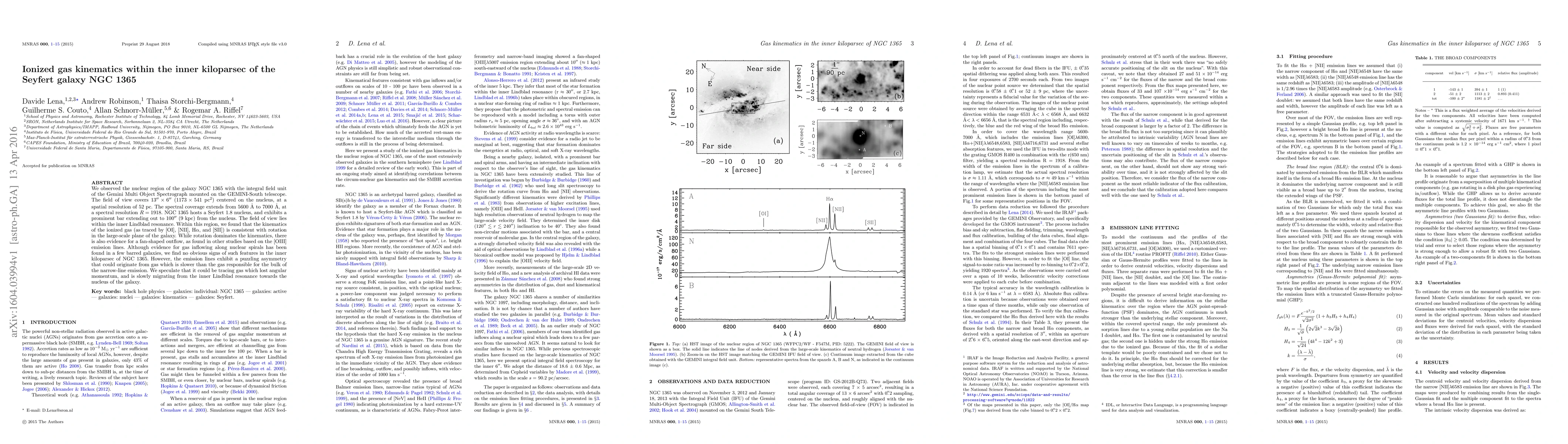 We observed the nuclear region of the galaxy NGC 1365 with the integral field unit of the Gemini Multi Object Spectrograph mounted on the GEMINI-South telescope. The field of view covers $13^{\prime\prime} \times 6^{\prime\prime}$ ($1173 \times 541$ pc$^{2}$) centered on the nucleus, at a spatial resolution of $52$ pc. The spectral coverage extends from $5600$ \AA\ to $7000$ \AA, at a spectral resolution $R=1918$. NGC 1365 hosts a Seyfert 1.8 nucleus, and exhibits a prominent bar extending out to $100^{\prime\prime}$ (9 kpc) from the nucleus. The field of view lies within the inner Lindblad resonance. Within this region, we found that the kinematics of the ionized gas (as traced by [OI], [NII], H$\alpha$, and [SII]) is consistent with rotation in the large-scale plane of the galaxy. While rotation dominates the kinematics, there is also evidence for a fan-shaped outflow, as found in other studies based on the [OIII] emission lines. Although evidence for gas inflowing along nuclear spirals has been found in a few barred galaxies, we find no obvious signs of such features in the inner kiloparsec of NGC 1365. However, the emission lines exhibit a puzzling asymmetry that could originate from gas which is slower than the gas responsible for the bulk of the narrow-line emission. We speculate that it could be tracing gas which lost angular momentum, and is slowly migrating from the inner Lindblad resonance towards the nucleus of the galaxy.
