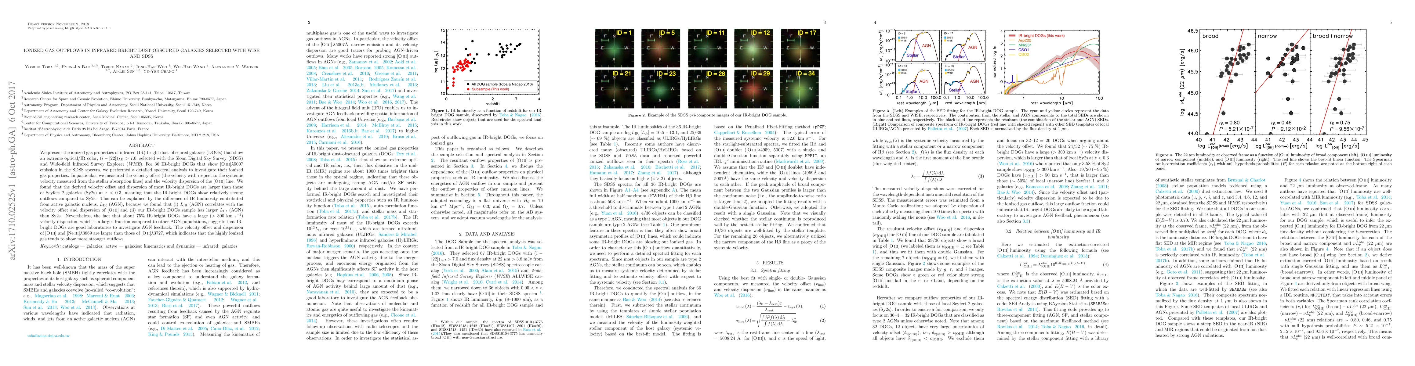 This study investigates ionized gas outflows in infrared-bright, dust-obscured galaxies (DOGs) using SDSS and WISE data. The analysis shows that these DOGs exhibit stronger ionized gas outflows compared to Seyfert 2 galaxies, likely due to higher infrared luminosity from active galactic nuclei, making them valuable for studying AGN feedback.