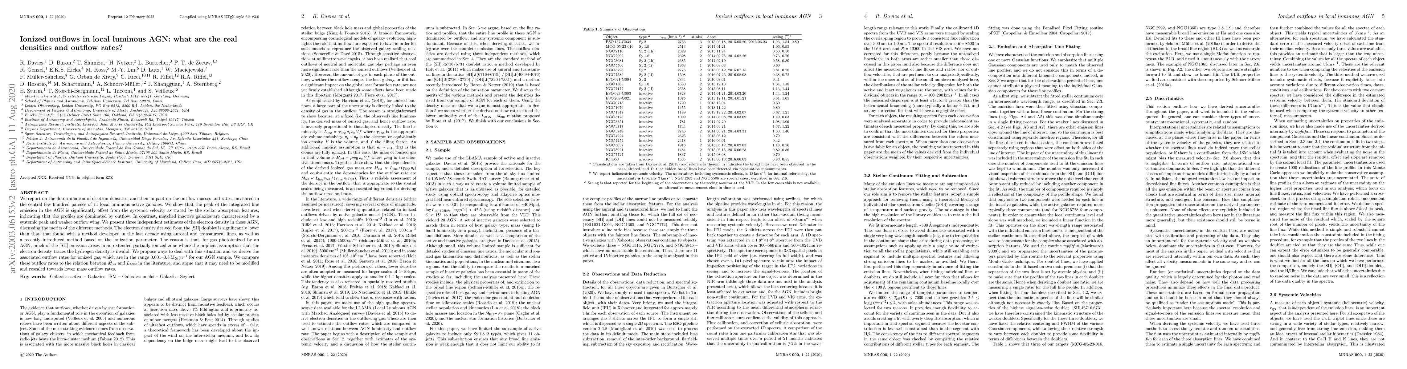 We report on the determination of electron densities, and their impact on the outflow masses and rates, measured in the central few hundred parsecs of 11 local luminous active galaxies. We show that the peak of the integrated line emission in the AGN is significantly offset from the systemic velocity as traced by the stellar absorption features, indicating that the profiles are dominated by outflow. In contrast, matched inactive galaxies are characterised by a systemic peak and weaker outflow wing. We present three independent estimates of the electron density in these AGN, discussing the merits of the different methods. The electron density derived from the [SII] doublet is significantly lower than than that found with a method developed in the last decade using auroral and transauroral lines, as well as a recently introduced method based on the ionization parameter. The reason is that, for gas photoionized by an AGN, much of the [SII] emission arises in an extended partially ionized zone where the implicit assumption that the electron density traces the hydrogen density is invalid. We propose ways to deal with this situation and we derive the associated outflow rates for ionized gas, which are in the range 0.001--0.5 M$_{\odot}$yr$^{-1}$ for our AGN sample. We compare these outflow rates to the relation between $\dot{M}_{out}$ and $L_{AGN}$ in the literature, and argue that it may need to be modified and rescaled towards lower mass outflow rates.
