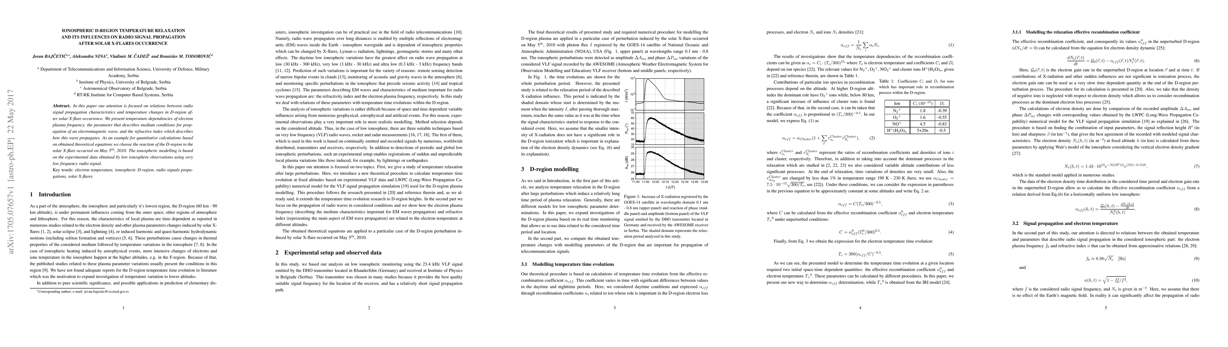 This paper investigates the relationship between solar X-flares and changes in D-region ionospheric temperature, focusing on how these changes affect radio signal propagation. It examines the electron plasma frequency and refractive index dependencies, using the 2010 May 5th X-flare as a case study based on low-frequency radio signal observations.