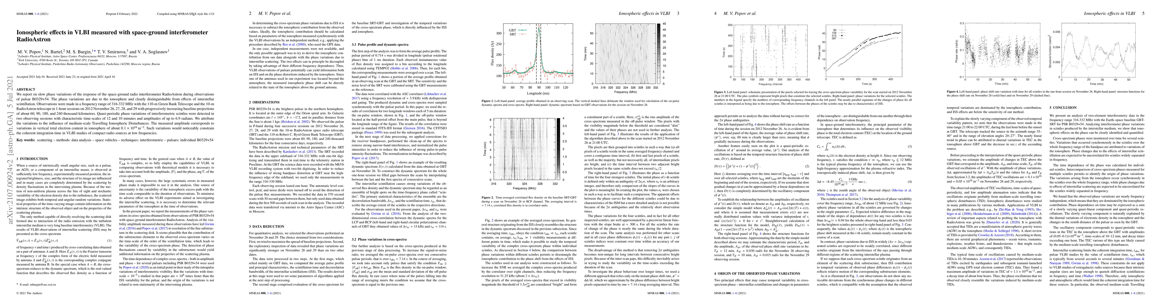 Researchers detected slow phase variations in RadioAstron's responses due to ionospheric effects, which can impact VLBI studies of compact radio sources at low frequencies.