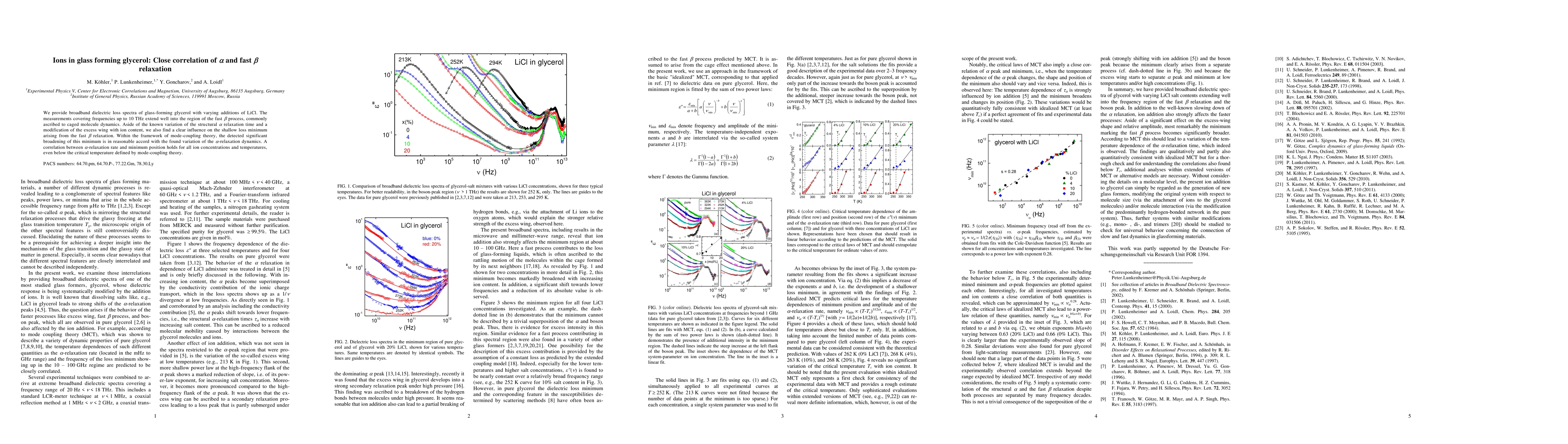 This paper investigates the dielectric loss spectra of glycerol with added LiCl, showing a strong correlation between the alpha relaxation and the fast beta relaxation processes, particularly as influenced by ion content. The study finds that the beta relaxation minimum broadens in line with changes in alpha relaxation dynamics, consistent with mode-coupling theory.