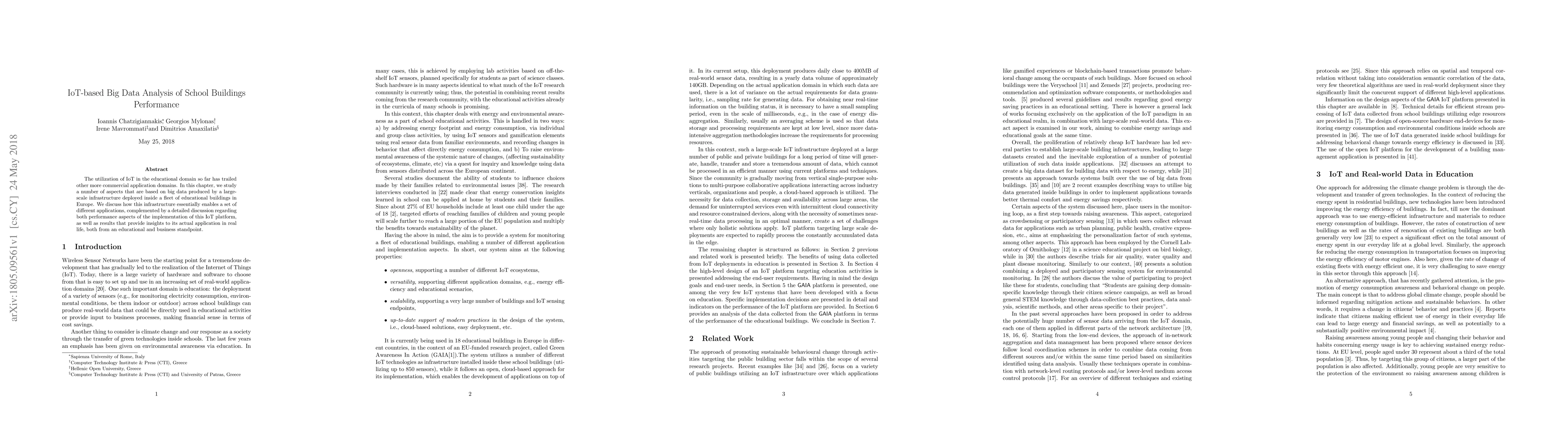 This paper explores the deployment of IoT infrastructure in European school buildings to generate big data, analyzing its performance and applications, and provides insights into its practical use in education and business contexts.
