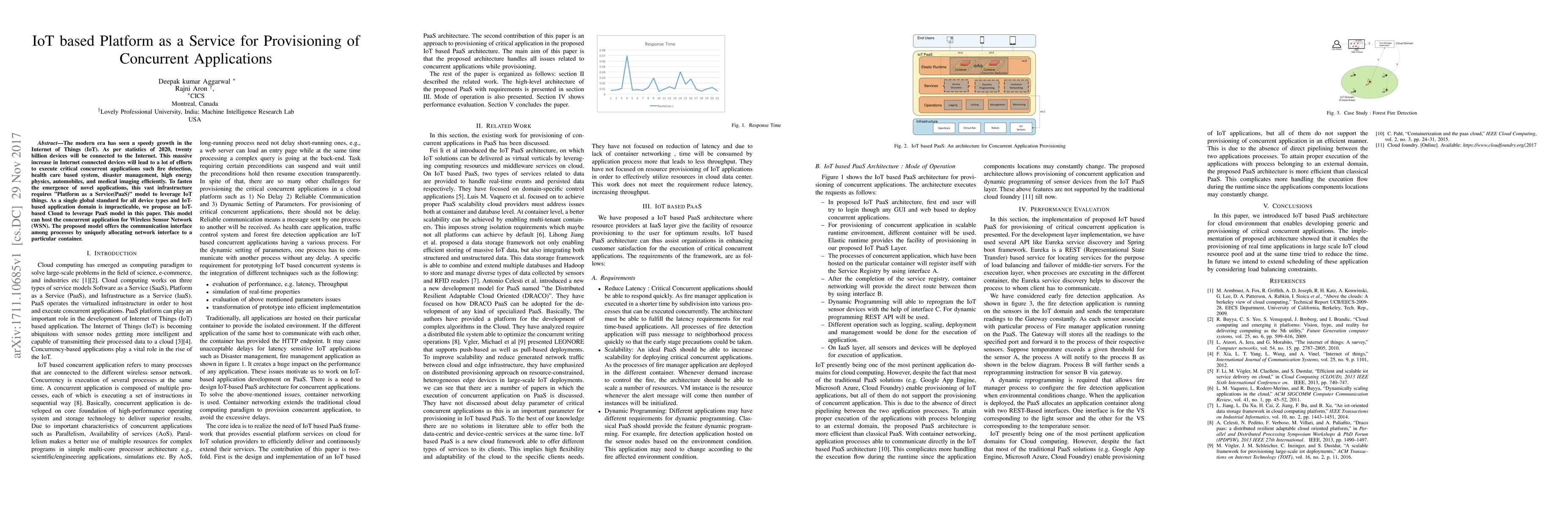 This paper proposes an IoT-based Platform as a Service (PaaS) model to efficiently manage and execute concurrent applications like fire detection and healthcare systems. The model leverages IoT cloud infrastructure to provide a communication interface for Wireless Sensor Network (WSN) applications.
