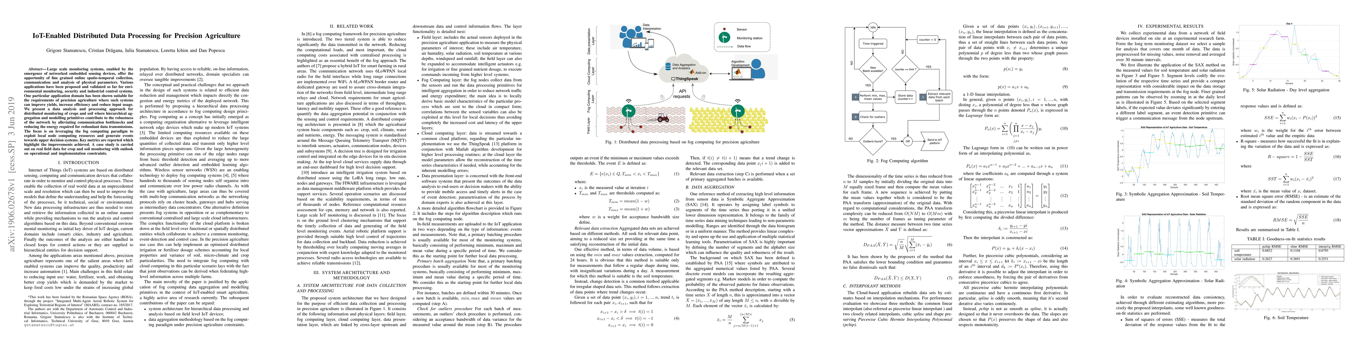 This paper introduces a data analysis approach for IoT-enabled distributed monitoring in precision agriculture, improving crop yields and efficiency through hierarchical aggregation and modeling.