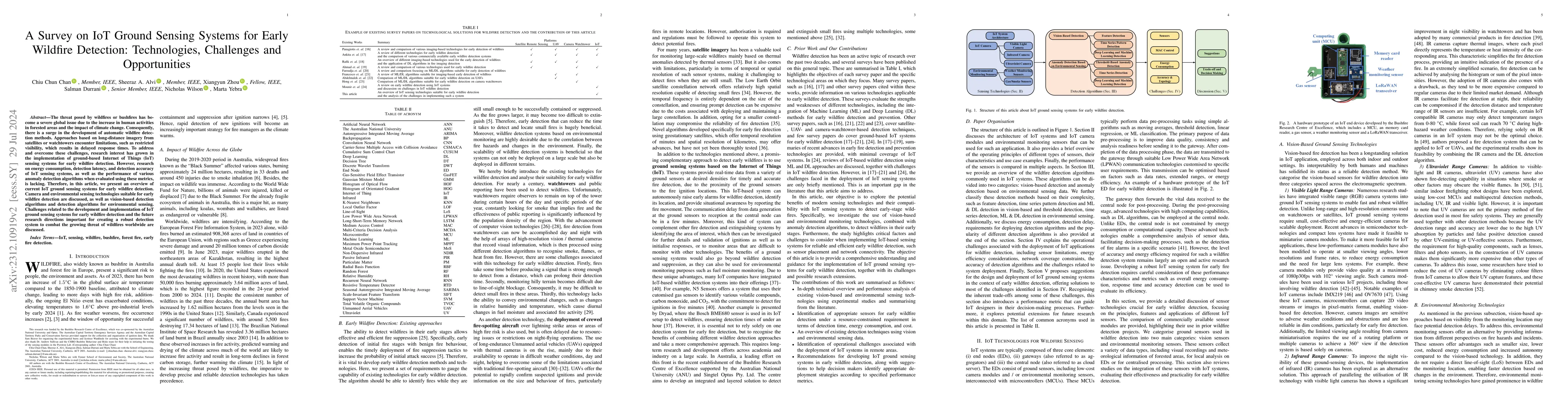 This paper reviews IoT ground sensing systems for early wildfire detection, highlighting technologies, challenges, and opportunities. It emphasizes the need for improved energy efficiency, detection accuracy, and timely response, while discussing current limitations and future research directions.