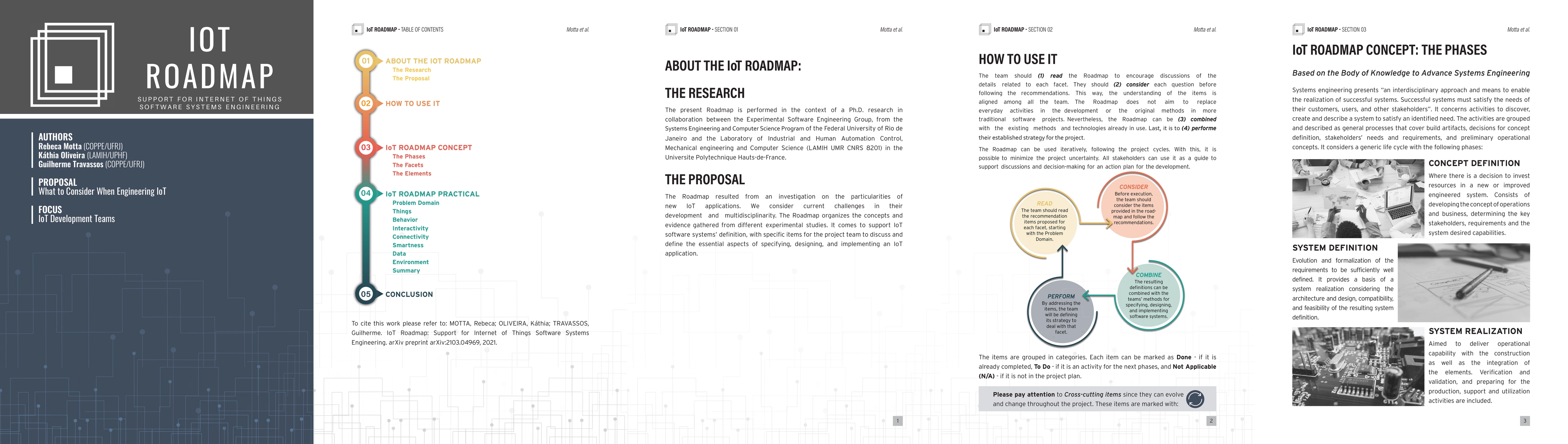The Roadmap is performed in the context of a Ph.D. research in collaboration between the Experimental Software Engineering Group, from the Systems Engineering and Computing Program of the Federal University of Rio de Janeiro (COPPE/UFRJ) and the Laboratory of Industrial and Human Automation Control, Mechanical engineering and Computer Science (LAMIH UMR CNRS 8201) in the Universit\`e Polytechnique Hauts-de-France (UPHF). The Roadmap resulted from an investigation on the particularities of IoT applications. It is the concrete organization of the concepts and evidence gathered from different experimental studies. It comes to support the definition of IoT software systems, with specific items for the project team to discuss and define the essential aspects related to the specifying, designing, and implementing an IoT application.